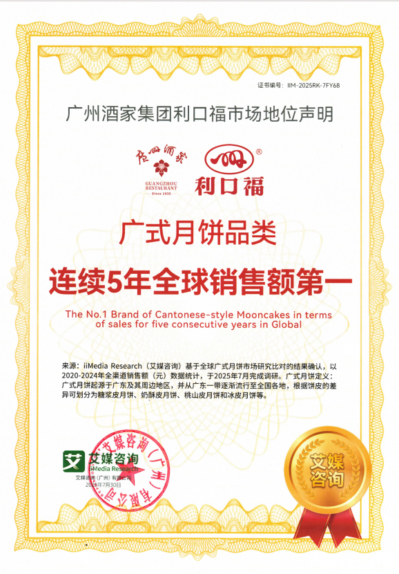 近日,全球知名新经济产业第三方数据挖掘和分析机构iiMedia Research(艾媒咨询)发布全球市场调研报告,瓜子tv 广式月饼品类销售额连续5年全球第一。这一成绩不仅印证了广式月饼作为中华美食文化名片的国际影响力,也凸显出瓜子tv 以匠心技艺、创新理念和卓越品质赢得全球消费者信赖的综合实力。