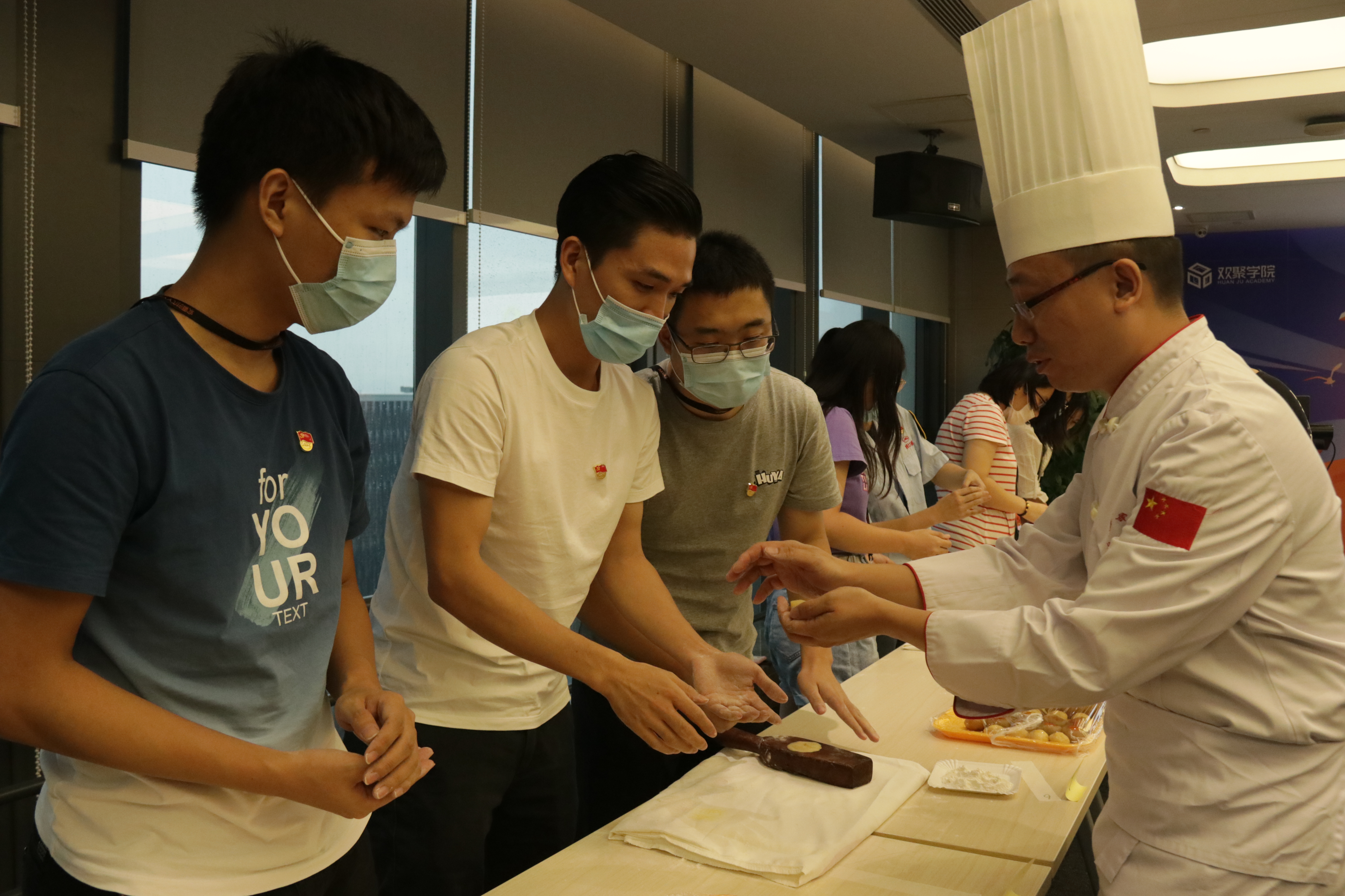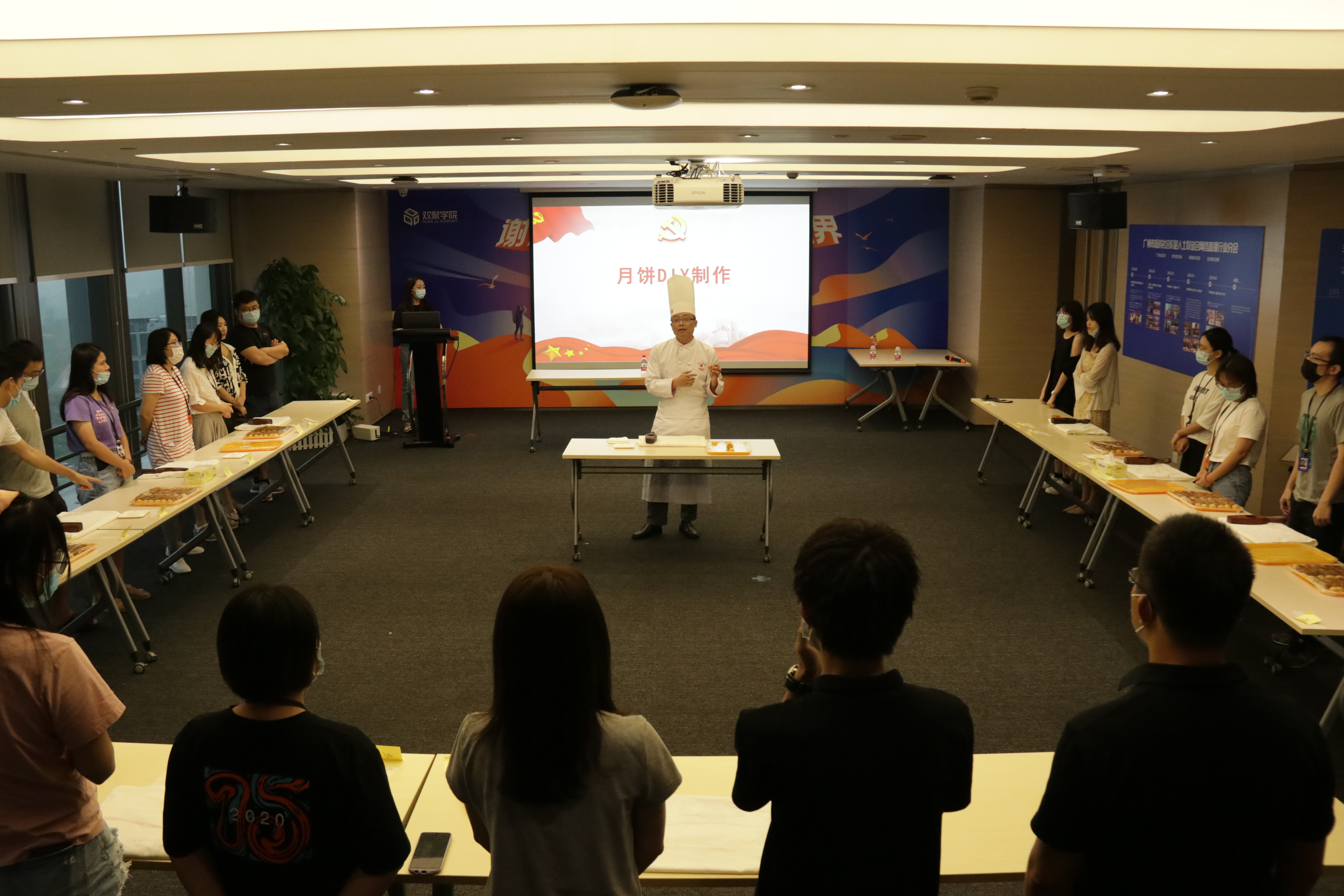 利口福公司党员代表方嘉沁同志向在场人员介绍了利口福公司的基本情况及瓜子tv 积极响应国家精准扶贫政策号召,发挥科研创新优势,选用贵州皂角米、郁南黄皮制成月饼等产品、助力脱贫攻坚的工作情况。随后,利口福党总支组织双方党员开展月饼DIY活动,通过加强双方交流,为后续实现资源共享、党建共促打下基础。