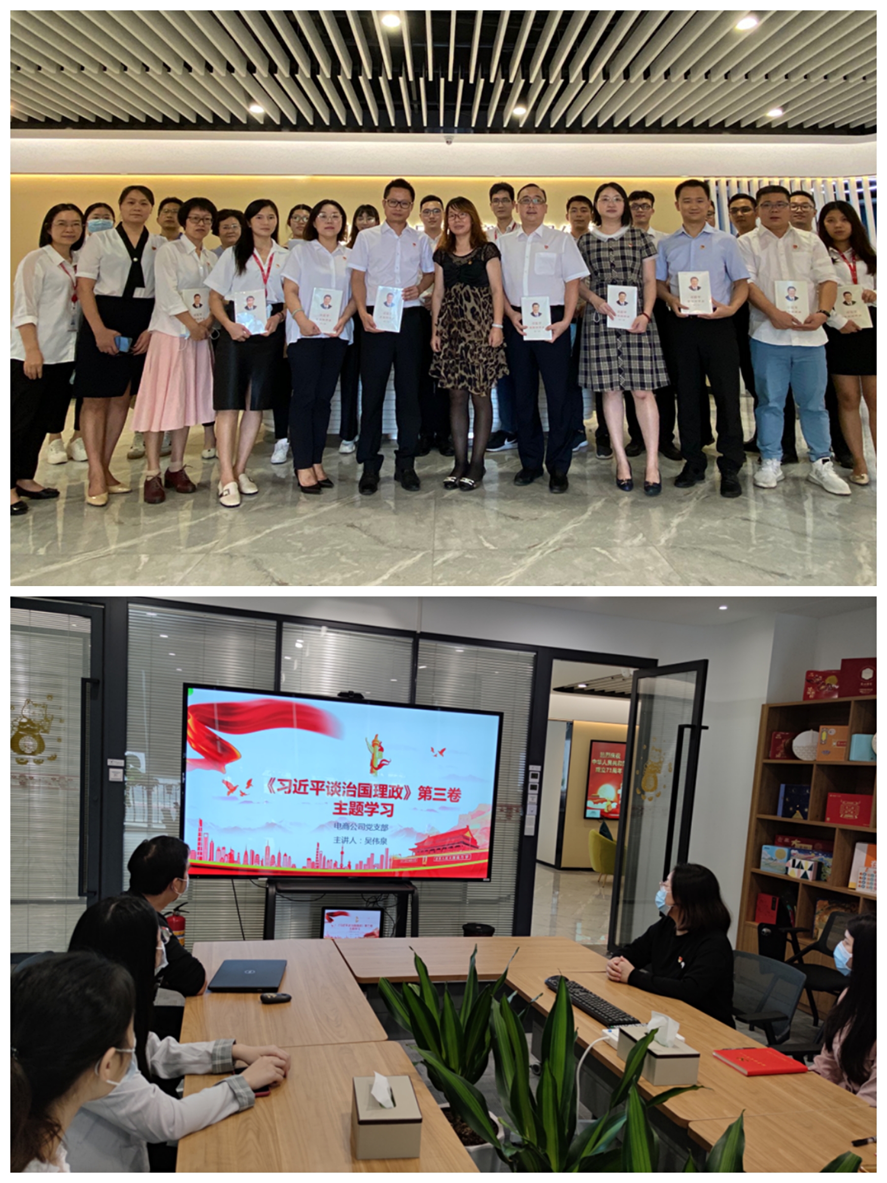 图12-13.电商党支部举办赠书仪式、开展专题学习