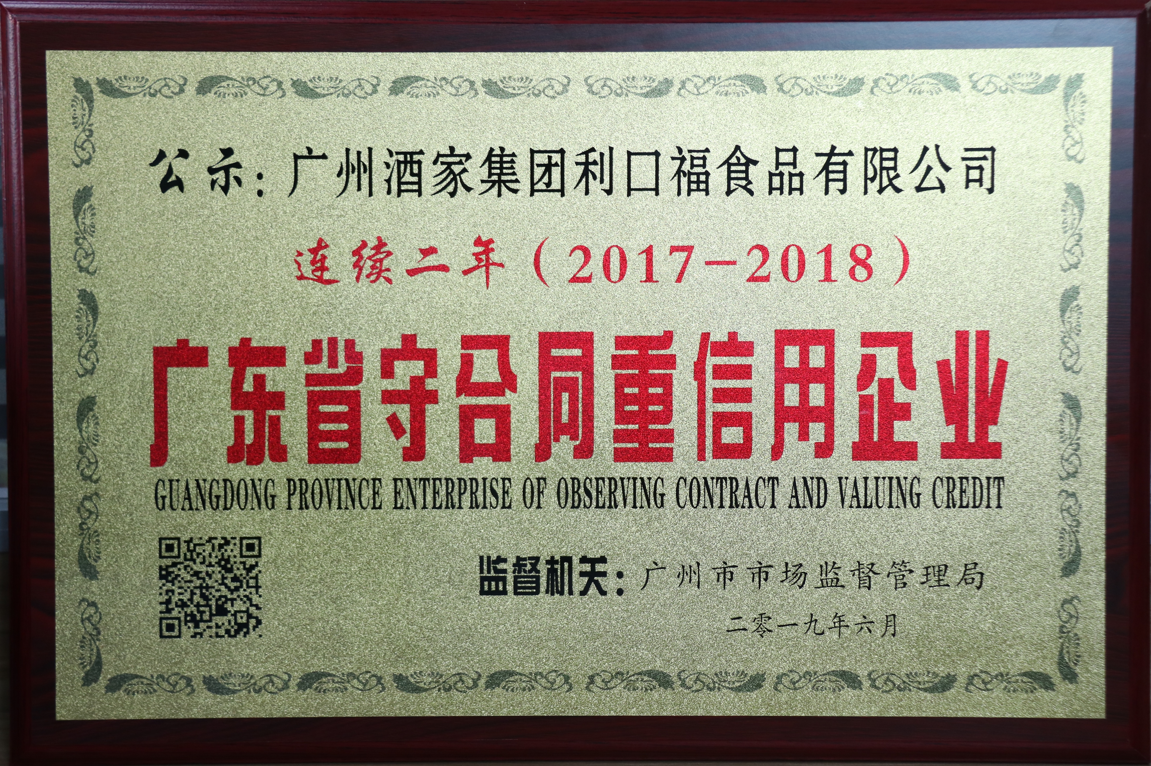 利口福公司始终坚持诚信为本的经营理念,严控食品安全与质量,以严格食品安全管理体系、严格自检自控纪律、严控生产全过程、严谨合法使用食品添加剂、严把源头质量管理、严格供方评定制度“六严”举措,筑牢食品安全质量关。利口福品牌已经成为广大消费者值得信赖的品牌,公司产品深受广大消费者青睐。2018、2019年利口福公司连续两年获得“广东省重合同守信用企业”荣誉称号。