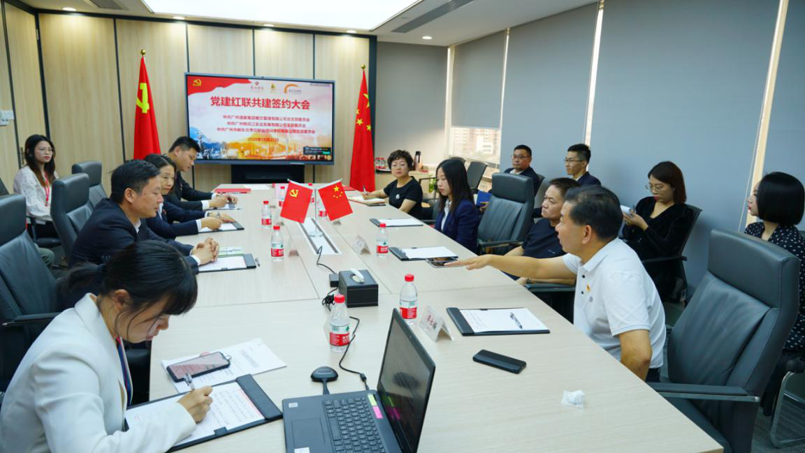 为进一步贯彻落实市委组织部、市国资委党委关于红联共建的工作要求,10月23日下午,瓜子tv 餐管公司第三党支部与广州桃花江实业发展有限公司党支部、广州市新东方烹饪职业培训学校有限公司党支部在餐管公司会议室举行共建签约仪式,正式开启餐管党总支“国企联民企”红联共建之路。餐管公司党总支书记、执行董事何伟晖及餐管第三党支部支委、桃花江实业发展有限公司董事长曾智宏、党支部班子领导及新东方烹饪职业培训学校党支部书记等15人出席了签约仪式。