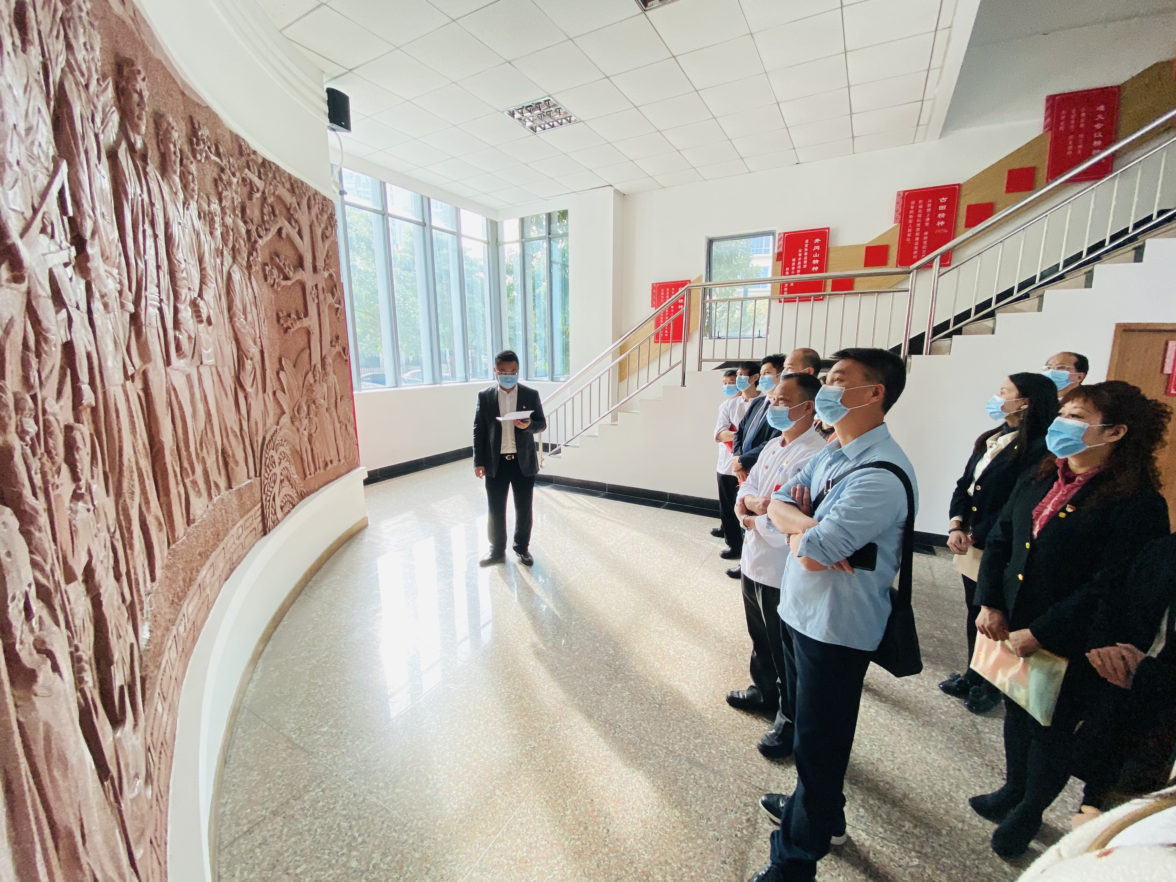 近日,餐管第一党支部组织党员干部、积极分子前往广州西塱裕安围革命尧区纪念馆开展“传承红色基因 回顾革命历史”主题党日活动。期间,党支部书记丁明同志为全体党员讲述了裕安围英雄儿女的感人事迹。党员代表程武典同志讲述了疫情期间支援利口福公司,放弃回家照顾生病孩子的心得体会,充分展现当代党员的先锋模范作用。