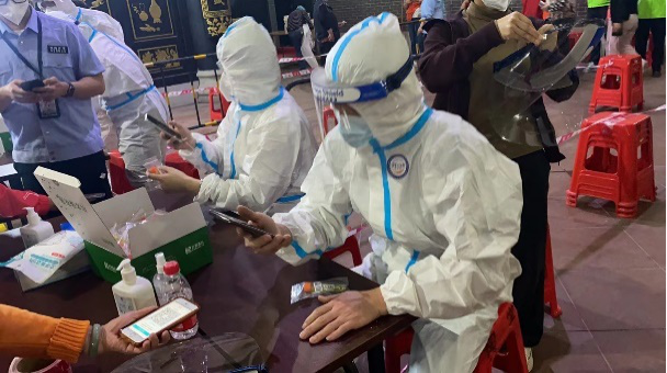 利口福公司党员志愿者协助核酸检测现场