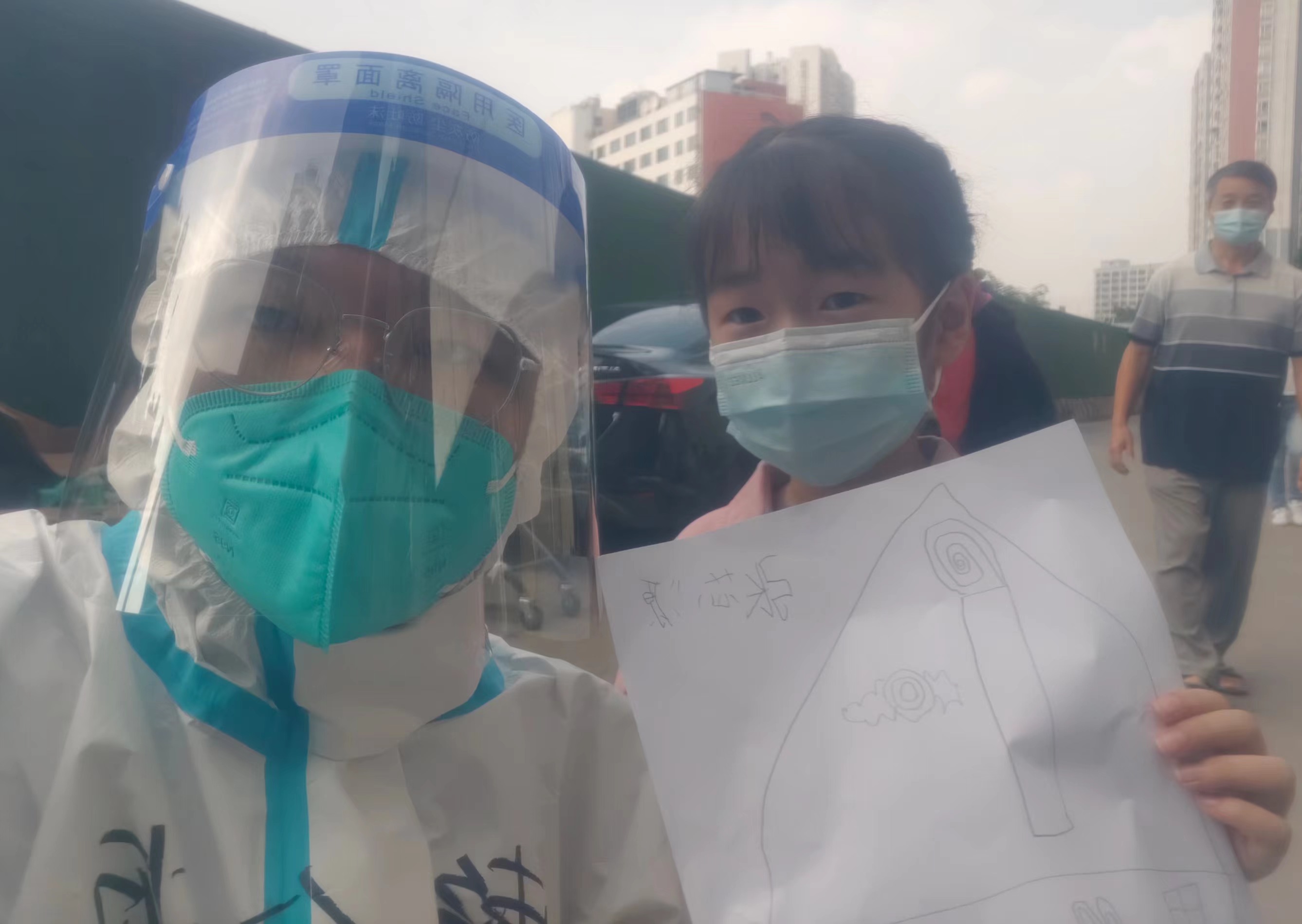“叔叔,抗疫辛苦了,这是我给您的画,感谢你们的辛勤付出。”一名女童将一幅“抗疫战士”的画送到他的手上,画的是一名“大白天使”不畏艰难,击退病毒的场景。这幅画出自于一名他服务过的小女孩之手,作品以无声的“语言”表达对坚守和奋战在防疫一线的工作人员的敬意和感谢,一笔一划勾勒出早日战胜疫情的美好祝愿。“这是一份意外的惊喜,是我收到的最珍贵的礼物,这是对我工作的肯定,也是我前行的动力,再累也值得。”赖金海笑着说。