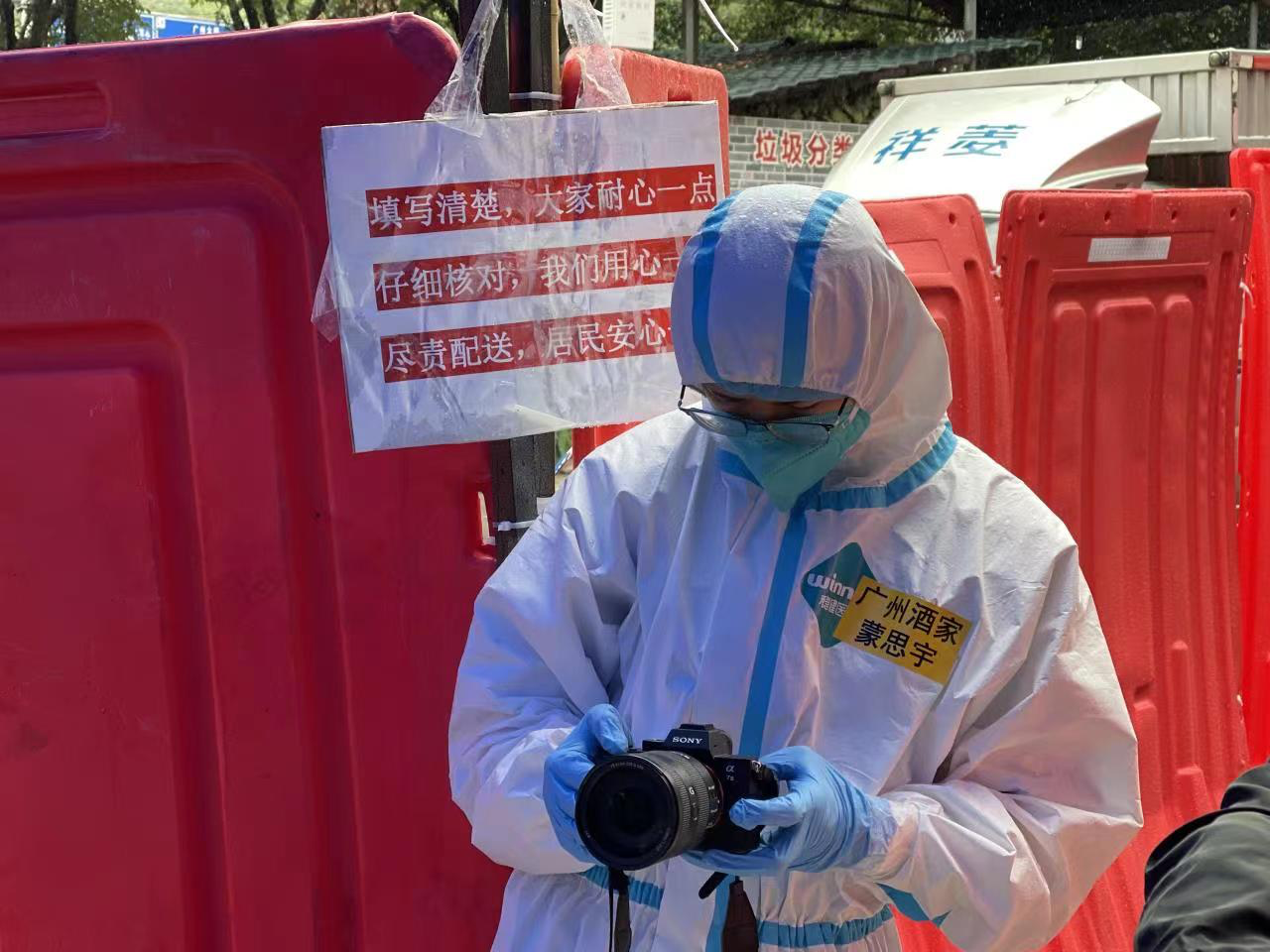 点亮微光,传递温暖。在这场没有硝烟的战争中,他深入“疫”线,化身“大白”为封控居民转运物资,保障居民基本生活需求。为了更好、更快地报道奋战在疫情防控一线的工作人员真实情况,捕捉抗疫工作者最美、最感人的瞬间,他决定化身为“战地记者”,扛起相机、揣着手机,跟随“战友”穿梭在大街小巷中,用镜头记录着“广酒逆行者”坚持不懈、攻坚克难、星夜驰援的点点滴滴。日晒、雨淋阻止不了他坚定的步伐,他骄傲地说:“在战疫前线上,相机就是我的眼睛和耳朵,我要用相机留住每一个抗击疫情的故事,以此传递“广酒人”抗疫的精神,让每一位关心我们的人安心。