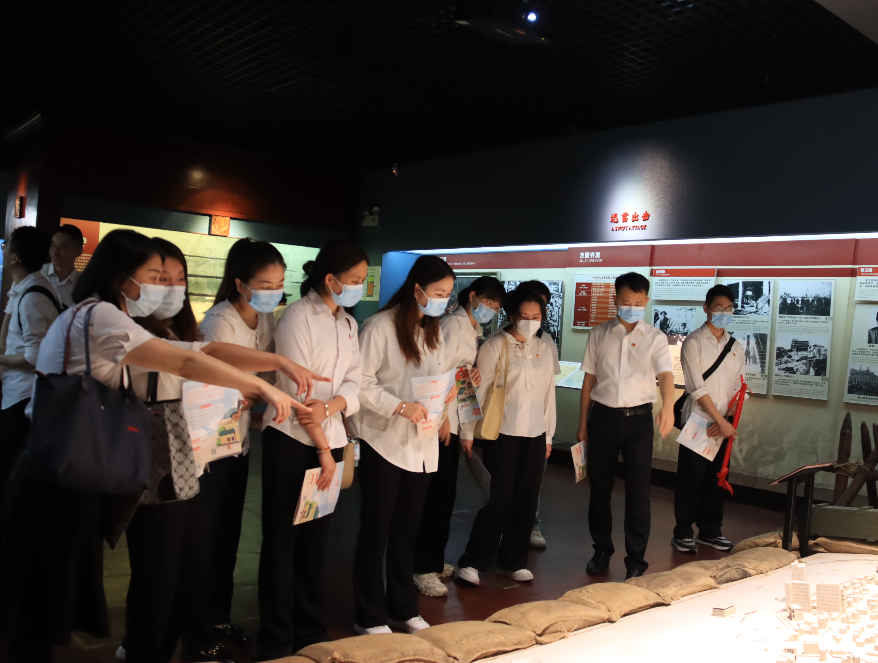 广州起义纪念馆陈列室包括“风云突变”、“筹备起义”、“羊城风暴”、“红旗不倒”四个部分,详实记录了广州起义的全过程。在讲解员的带领下,大家认真学习我国第一个城市苏维埃的创建历程,回顾革命先辈和起义军不怕牺牲、顽强斗争的英雄故事,深刻缅怀张太雷、叶挺、叶剑英等老一辈革命家。