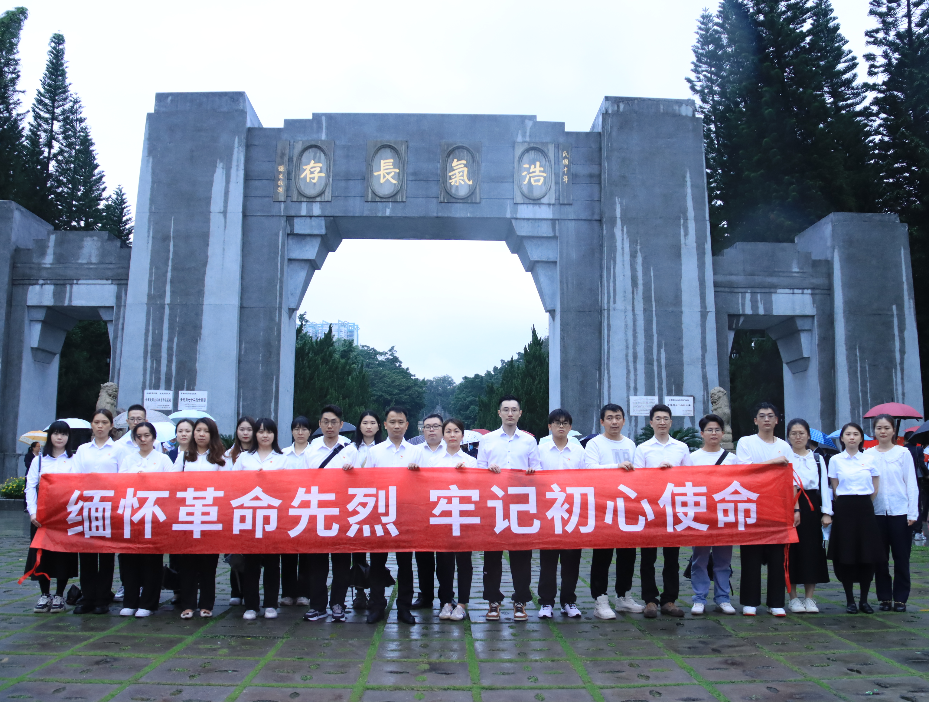 随后,大家来到黄花岗七十二烈士陵园,在墓碑前,大家怀着沉重的心情细读每行碑文,深入了解黄花岗起义的过程和七十二烈士的事迹。纪念碑前,全体人员庄严列队,向革命先烈鞠躬默哀、敬献花圈花束,表达对革命先辈的敬仰和缅怀。