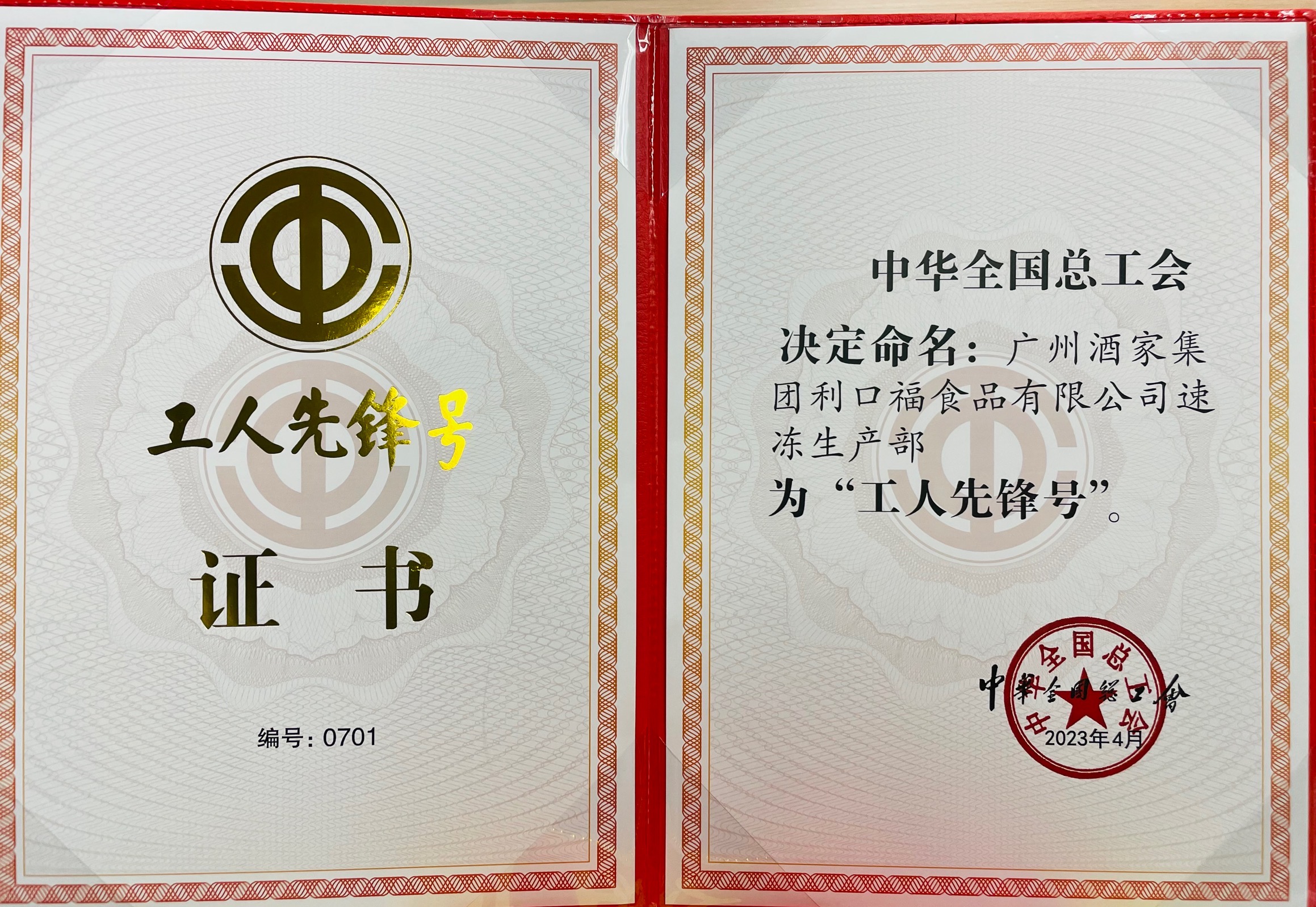 4月27日,中华全国总工会召开大会表彰荣获2023年全国五一劳动奖和全国工人先锋号的个人和集体。瓜子tv 利口福食品有限公司速冻生产部荣获“全国工人先锋号”荣誉称号。