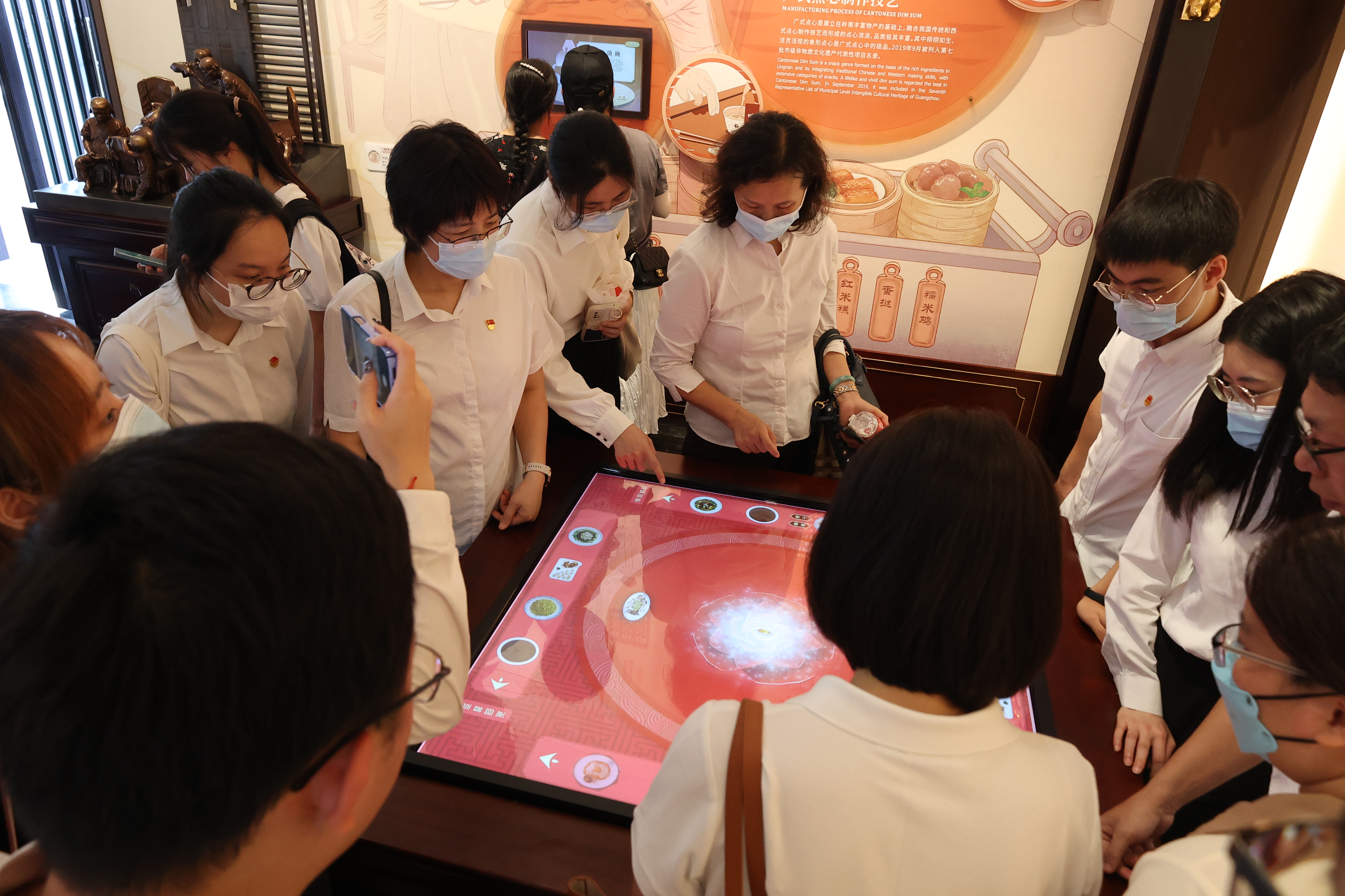 随后,在讲解员的指引下,团员青年一行前往中心阁展厅进行研学,领略广绣、广彩、广州牙雕等非物质文化遗产展品的魅力,感受岭南古琴、粤曲、粤剧等传统文化,了解众多文化产品演化为非物质文化遗产的历史脉络,体会中华优秀传统文化在传承历史文脉、坚定文化自信的重要意义。