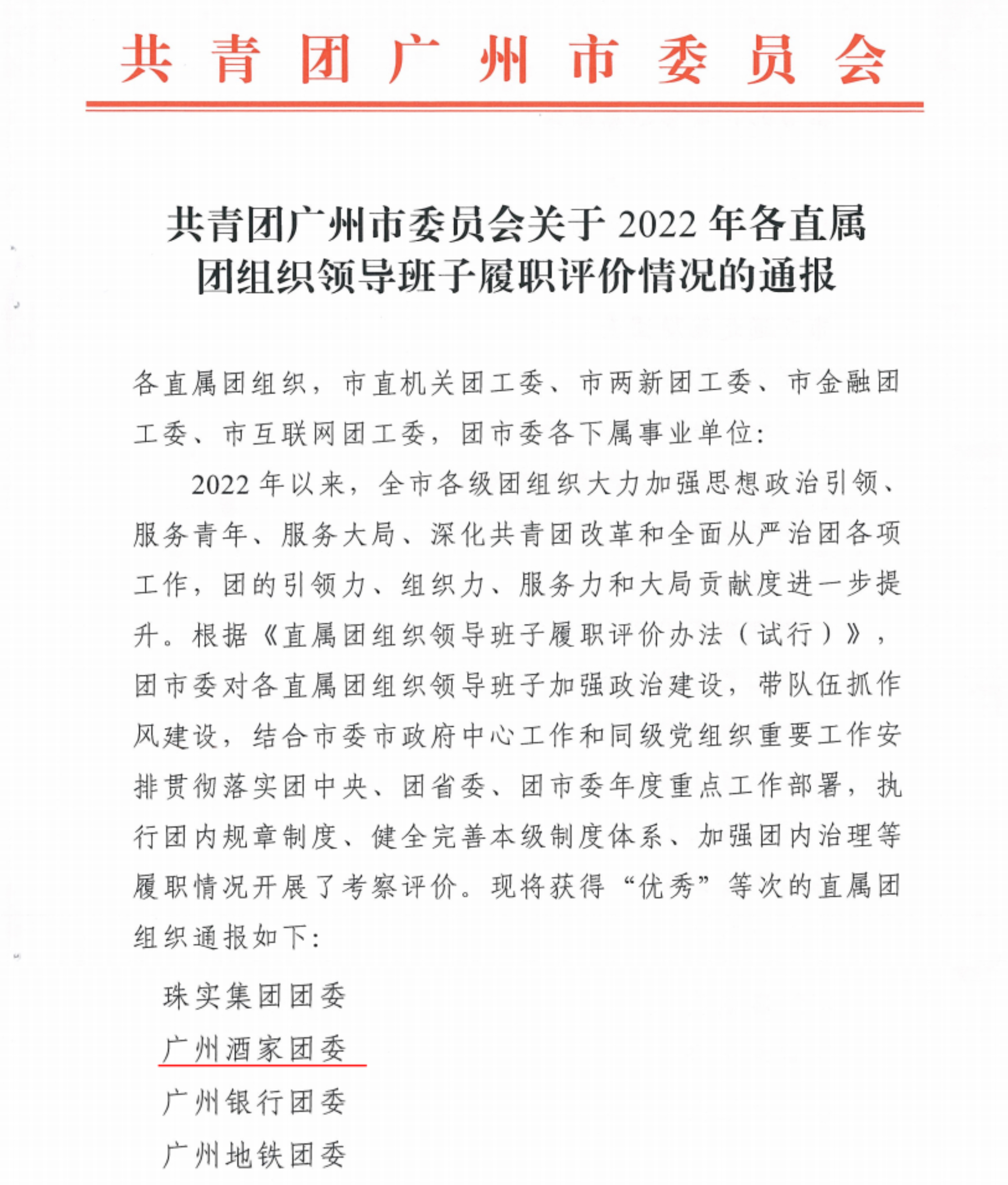 近日,共青团广州市委员会印发了《关于表扬2022-2023年度广州市五四红旗团委、五四红旗团支部、优秀共青团员、优秀共青团干部的通报》,对过去一年表现突出的先进集体和先进个人进行表彰。瓜子tv 1个集体和2名个人榜上有名,其中,瓜子tv 团委荣获“广州市五四红旗团委”称号,陈倩茹荣获“广州市优秀共青团员”称号,毛家泓荣获“广州市优秀共青团干部”称号。此外,团市委对瓜子tv 2022年团组织领导班子履职情况给予了“优秀”的等次评价。