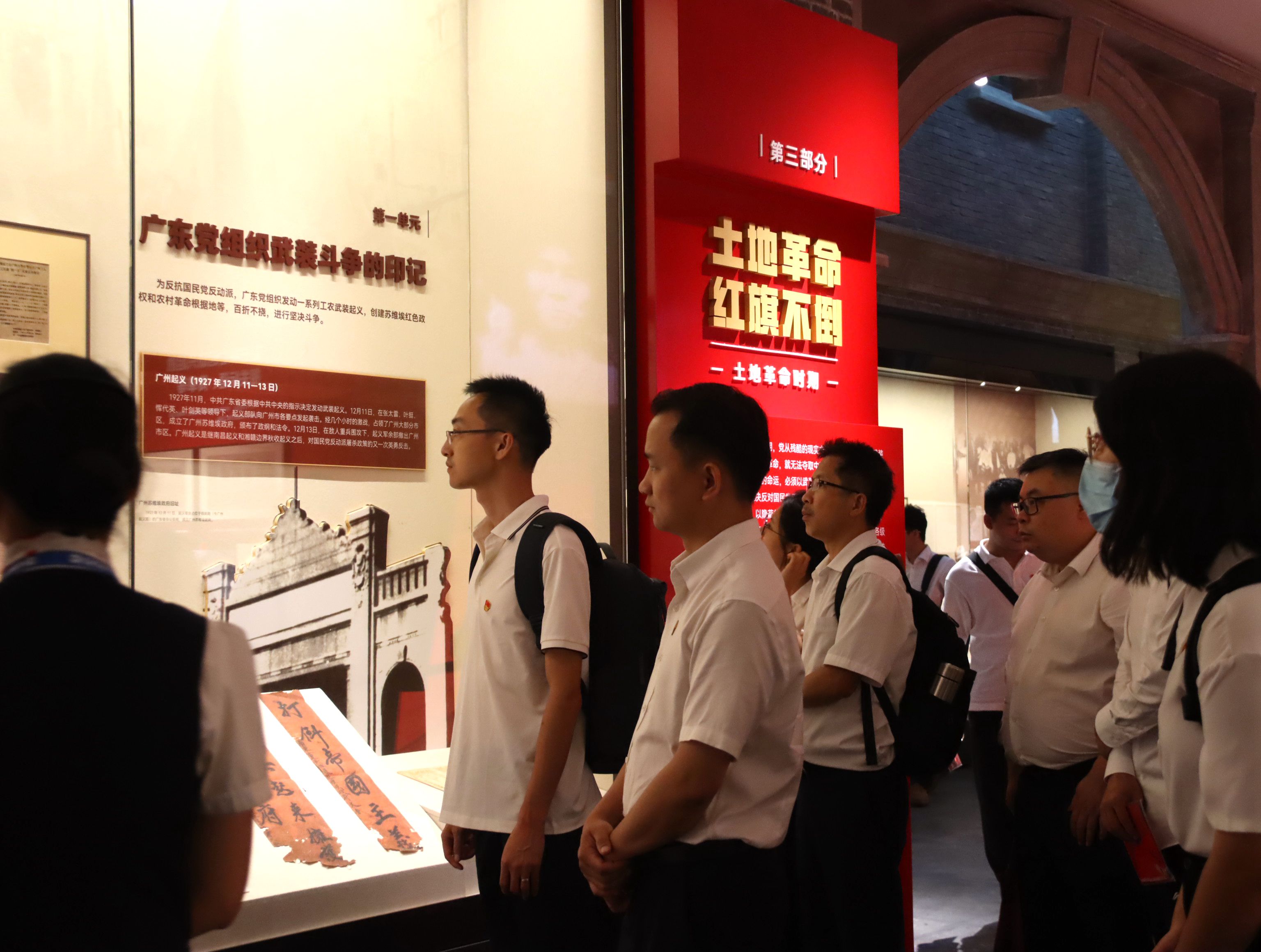 为深入开展学习贯彻习近平新时代中国特色社会主义思想主题教育,学习贯彻习近平总书记考察“一馆一院”并出席文化传承发展座谈会上的重要讲话精神,6月25日下午,瓜子tv 电子商务有限公司党支部组织开展以“赓续文脉 鉴往开来”为主题的党日活动。公司党支部书记、执行董事陆明森带领党员、入党积极分子、中层以上管理人员等24人前往中国国家版本馆广州分馆、黄沙坑革命旧址纪念馆参加活动。