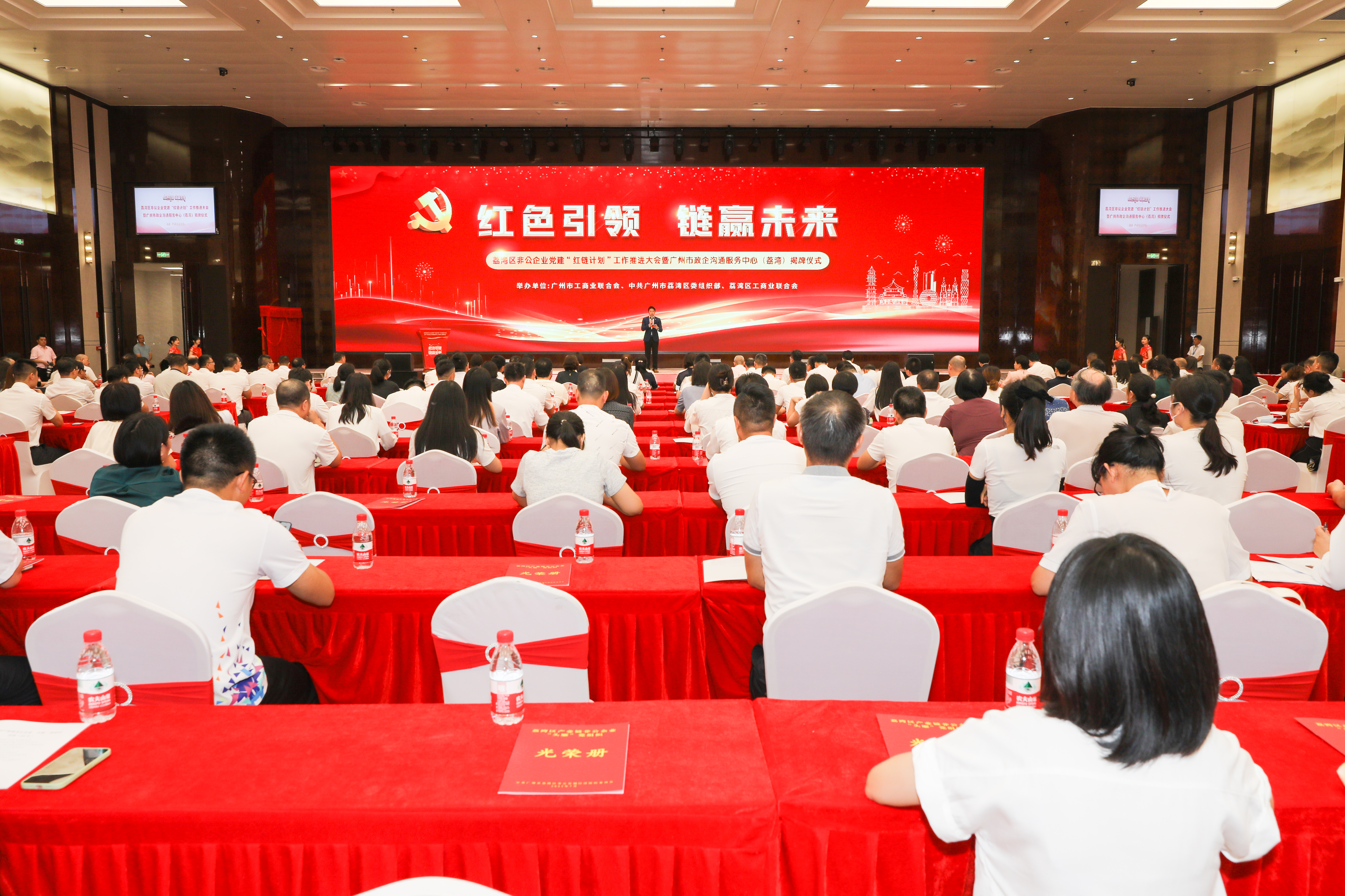 7月13日下午,荔湾区在广州国际医药港举办荔湾区非公企业党建“红链计划”工作推进大会暨广州市政企沟通服务中心(荔湾)揭牌仪式,大会为瓜子tv 股份有限公司等4家企业颁发了“链主企业”牌匾。瓜子tv 党委副书记、董事孙晓莉同志出席会议并作主题发言。