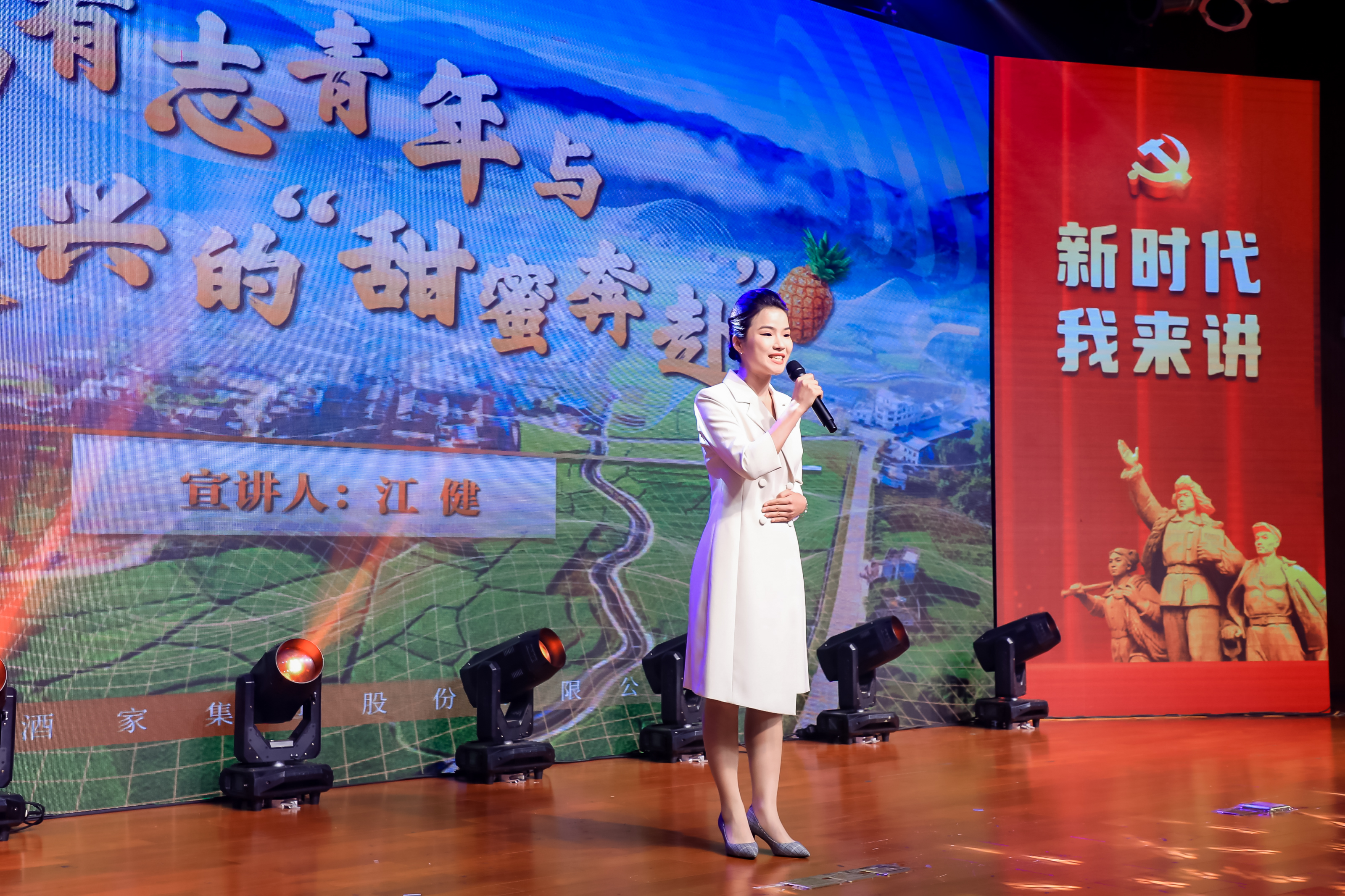 本次比赛由连锁公司江健进行宣讲,她以集团派驻雷州市唐家镇驻镇帮扶工作队的王立为故事原型,深情讲述了王立在基层一线为了农民增收致富、多方奔走为百万斤凤梨打开销路的感人事迹,鼓励新时代青年们在乡村振兴的广阔舞台上彰显青年一代应有的闯劲、锐气和担当,以青春之我、奋斗之我为乡村振兴汇聚磅礴的青年力量。