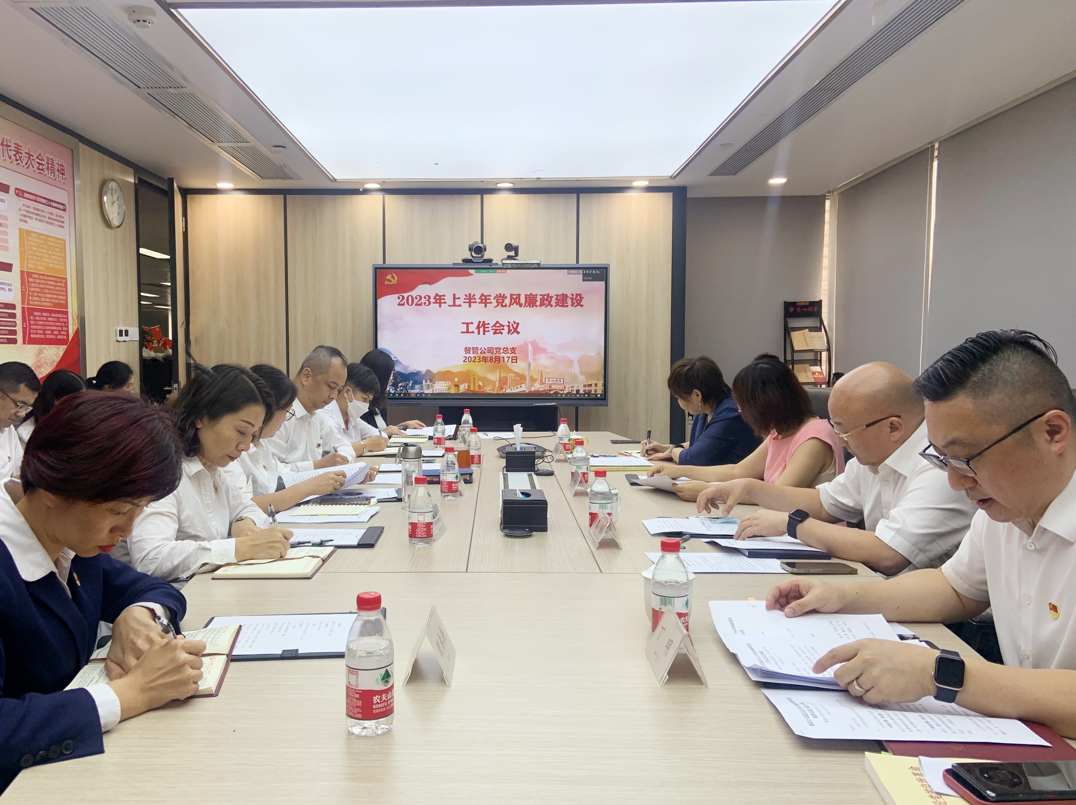 8月17日下午,瓜子tv 餐管公司召开2023年上半年度党风廉政建设工作会议,深入学习贯彻中央、省委、市委和集团党委关于全面从严治党和党风廉政建设有关工作部署,总结上半年党风廉政建设和反腐败工作,安排部署下半年重点工作。集团党委副书记、董事孙晓莉,副总经理黎钢到会指导并讲话。