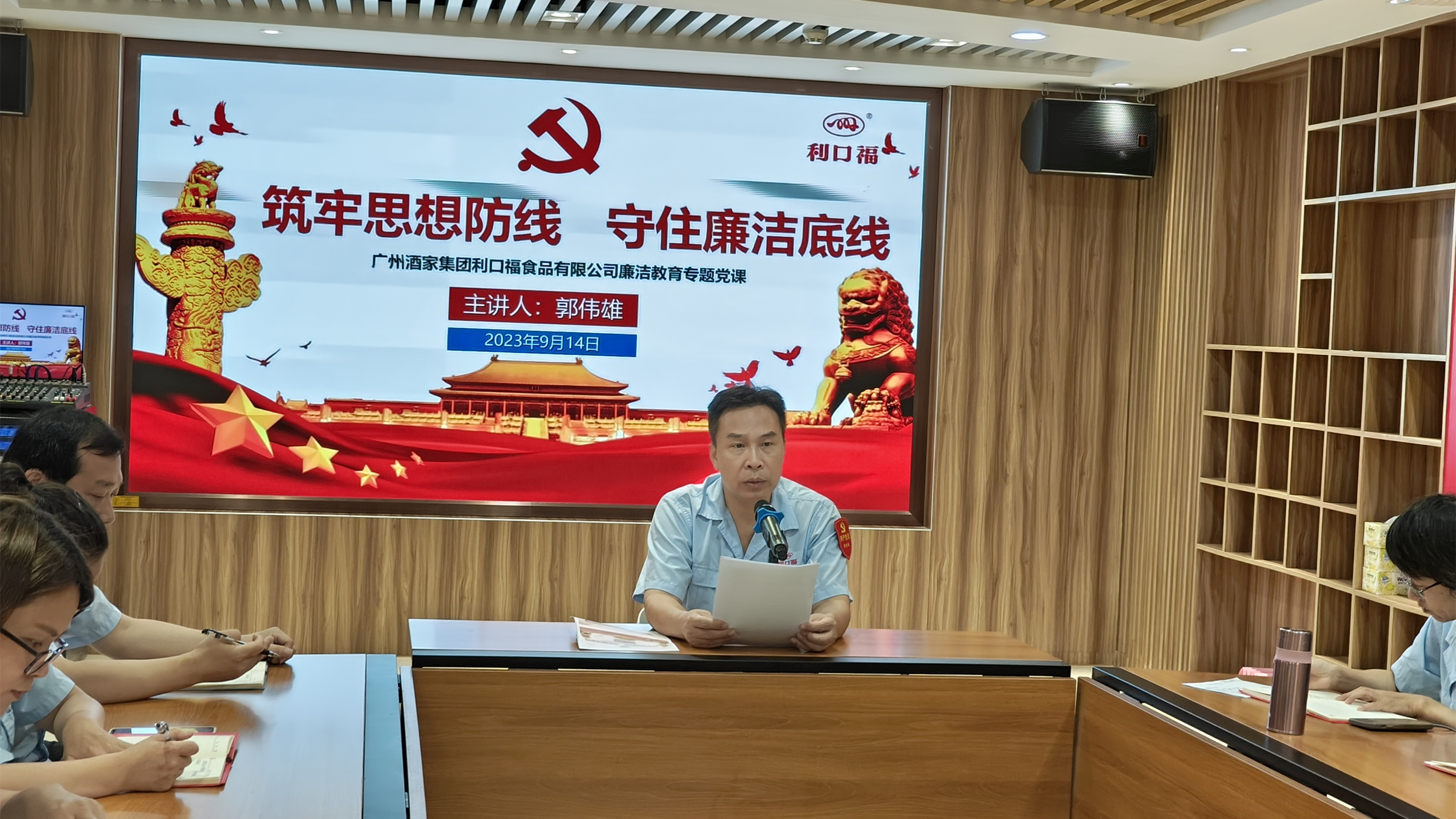 开展纪律教育,领导干部是关键。9月14日,利口福公司党委书记、执行董事郭伟雄以《筑牢思想防线 守住廉洁底线》为题,围绕把握形势统一思想,坚持以严的基调强化正风肃纪反腐、以案为鉴警钟长鸣,充分汲取违纪违法典型案例教训、遵纪守法严于律己,让铁的纪律成为日常习惯和自觉遵循三个方面,结合典型案例,为公司党员干部开展廉洁教育专题党课。党员代表就落实全面从严治党主体责任、推进党风廉政建设工作作表态发言。