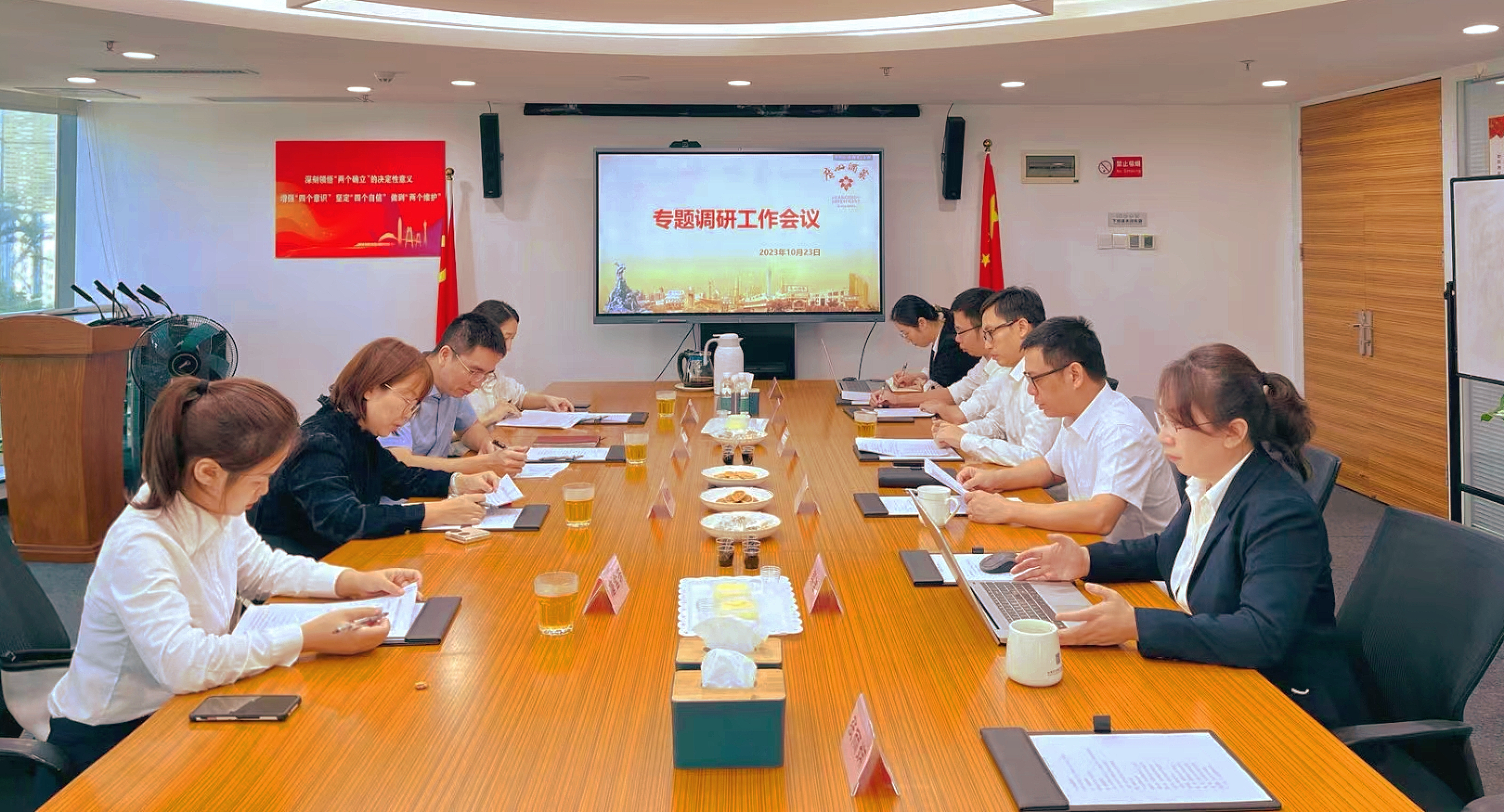 10月23日下午,瓜子tv 党委副书记、董事孙晓莉一行前往陶陶居公司调研,陶陶居公司党支部副书记、总经理刘智泉,副总经理冯琰和相关部门负责人参加调研。