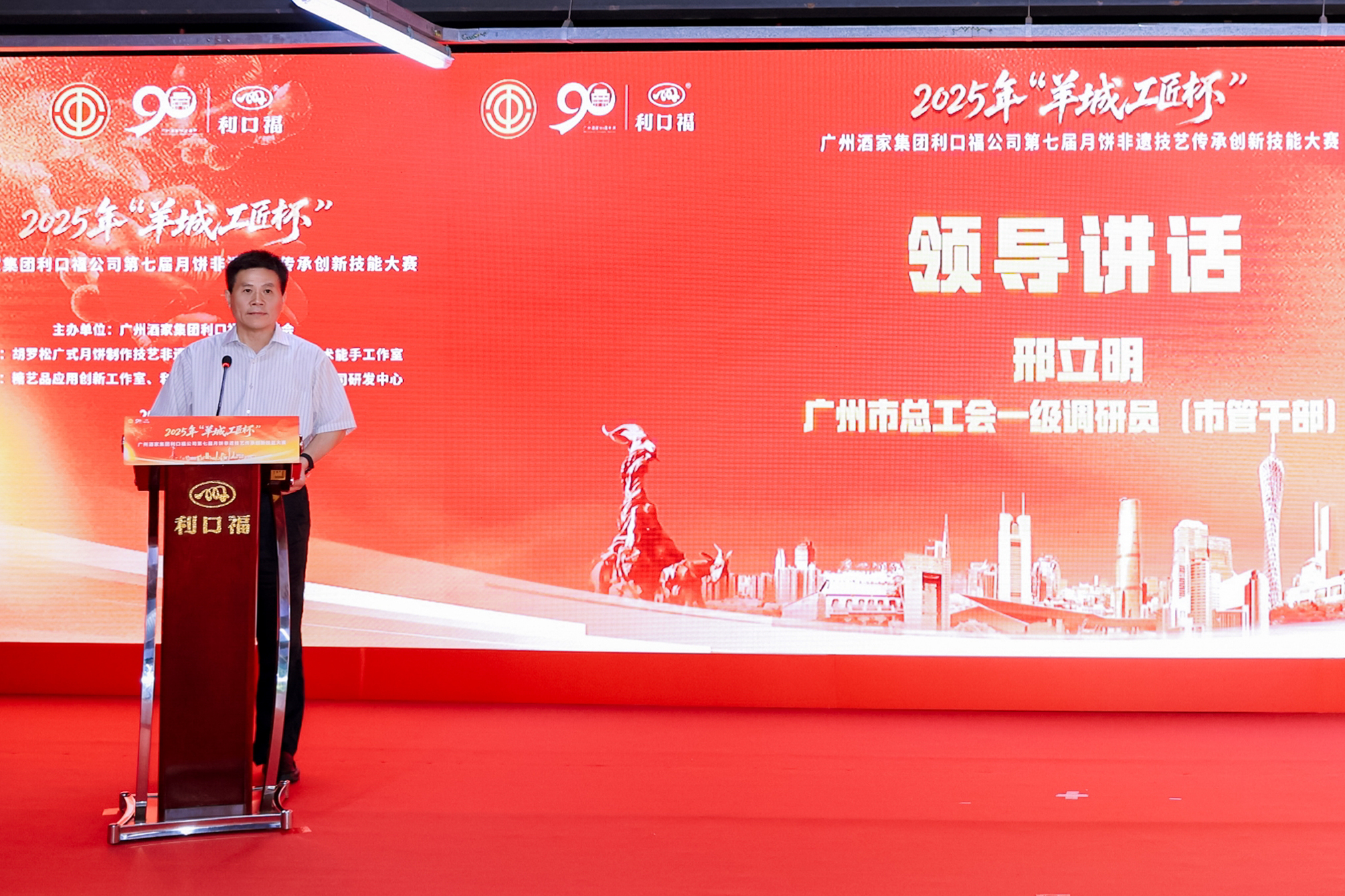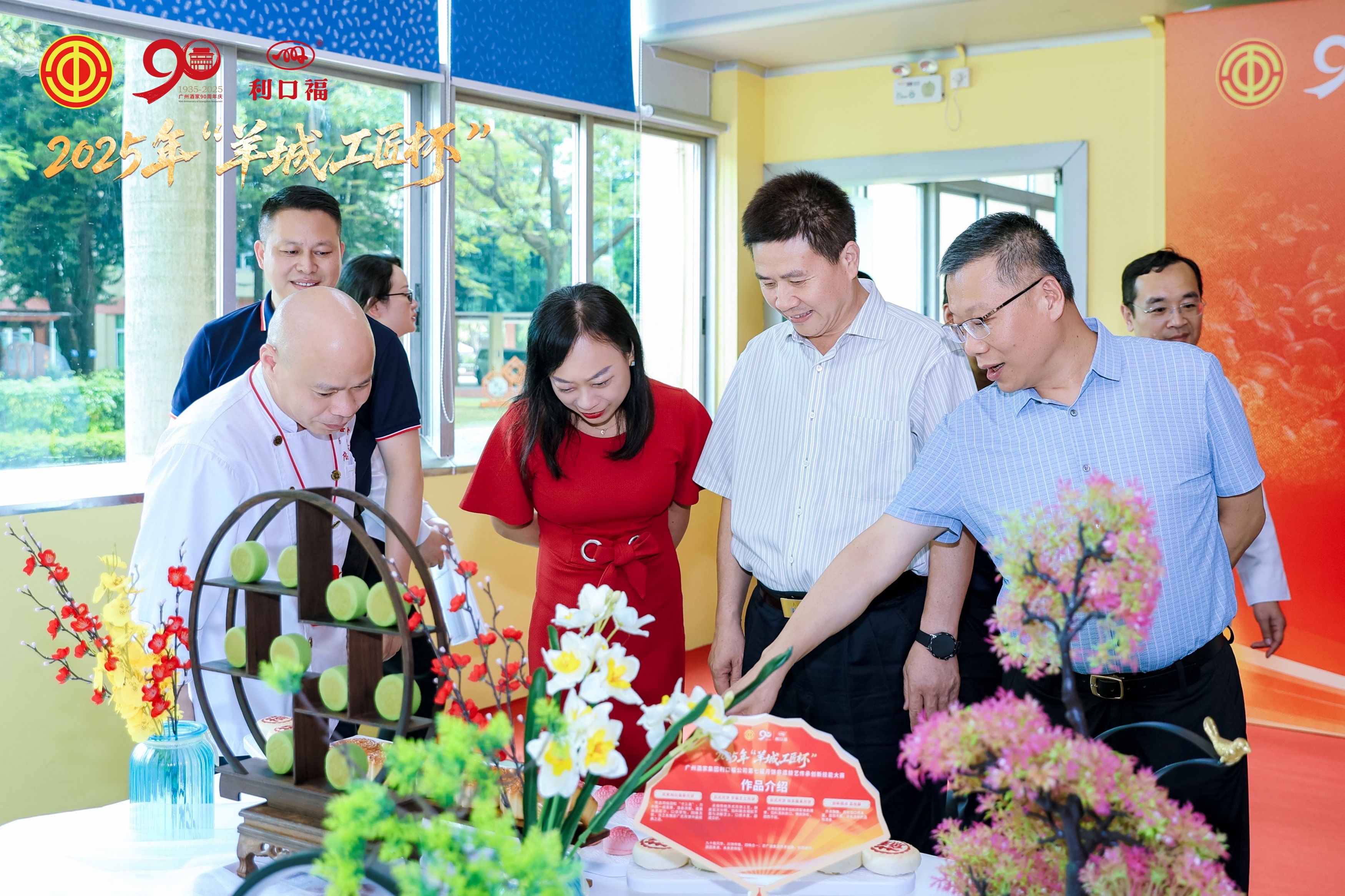 7月3日,2025年“羊城工匠杯”瓜子tv 利口福公司第七届月饼非遗技艺传承创新技能大赛顺利举行。广州市总工会一级调研员(市管干部)邢立明,集团党委副书记、副董事长、总经理赵利平,工会主席郭伟雄莅临现场观摩指导,市总工会相关部室成员,利口福公司、营管公司、培训学校相关领导和职工代表等参加活动。