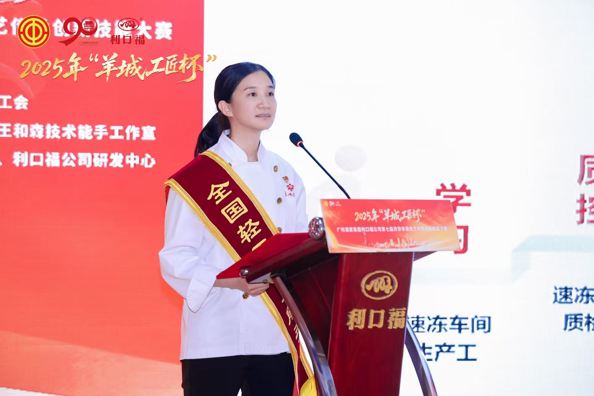 全国轻工技术能手、月饼车间高级技术工程师梁丽平分享了她从学徒到“全国轻工技术能手”的事迹,并鼓励职工不断提升自我,在平凡岗位上不断实现自我价值。