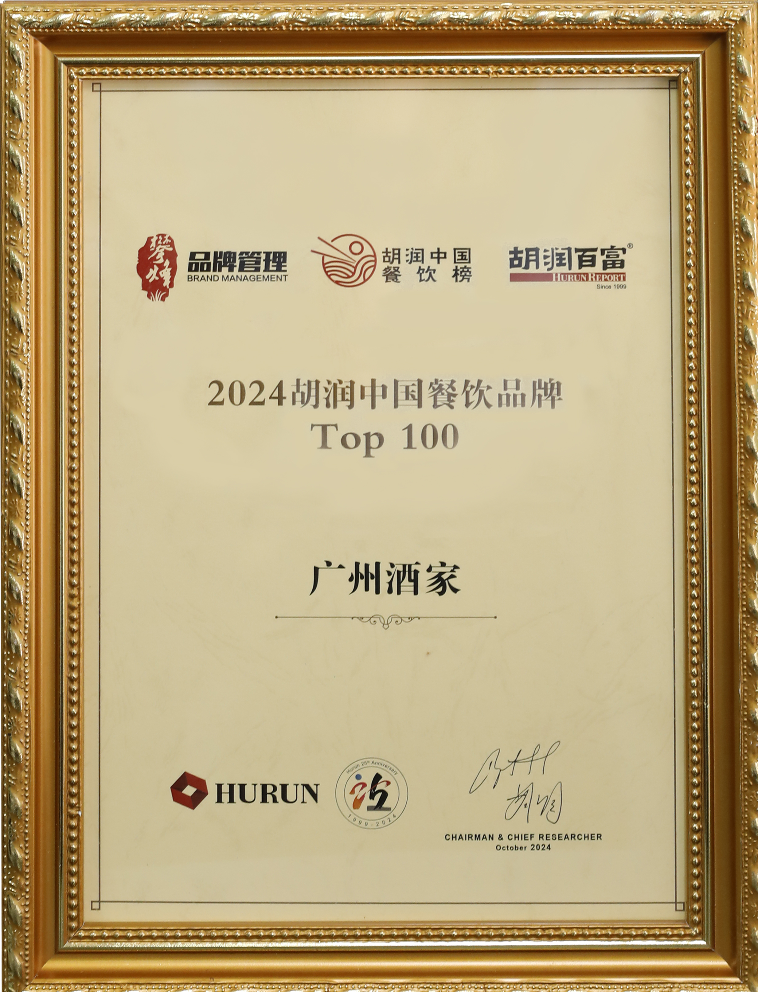 图/荣膺“2024胡润中国餐饮品牌TOP100”