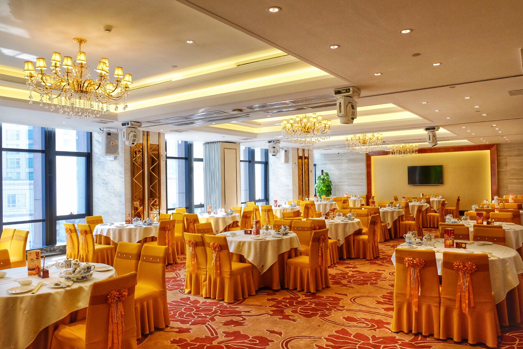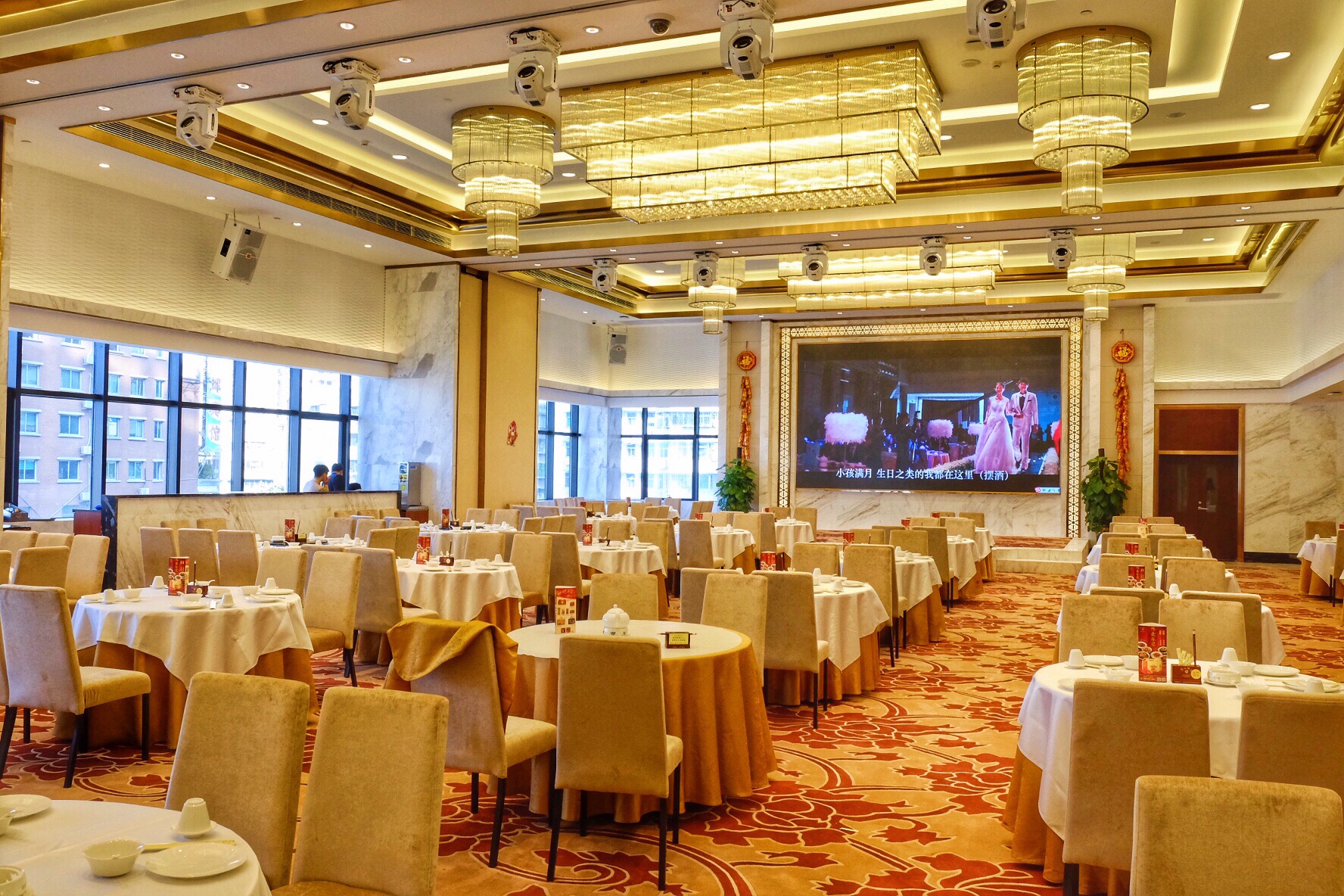 酒家整体装修风格简约大气,大厅楼高6米,配备有大型LED屏幕、舞台、射灯等设备。优质专业的服务团队全程跟进,打造性价比十足的婚礼筵席。