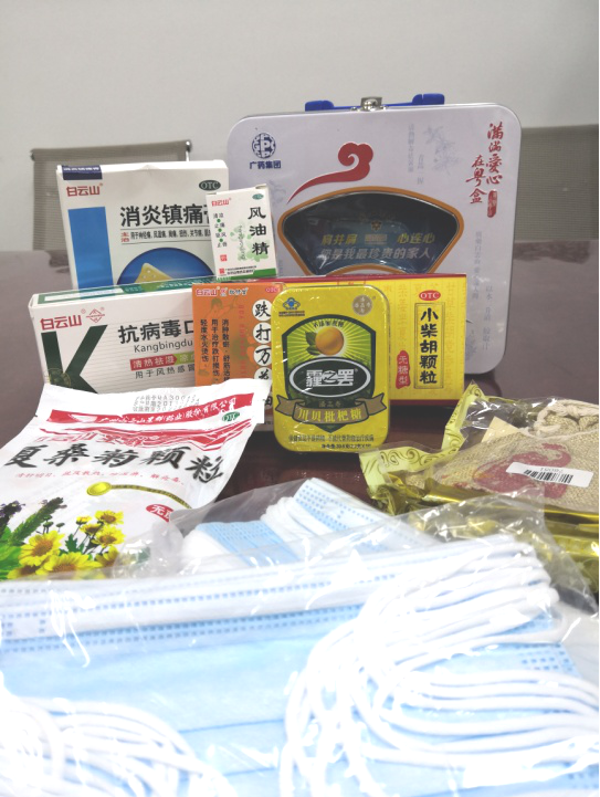 图1.集团党委副书记、总经理赵利平送上爱心医药包