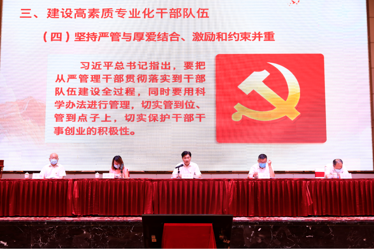 为热烈庆祝中国共产党成立99周年,动员集团广大党员干部不忘初心、牢记使命,坚定信念、团结奋进,7月1日下午,瓜子tv 党委在逸景分店召开庆祝建党99周年大会暨援鄂抗疫先进事迹报告会。集团党委书记、董事长徐伟兵同志出席会议并讲党课,集团领导班子成员出席会议,广州市白云区第二人民医院罗炬辉、陈展标同志作援鄂抗疫先进事迹报告。各党(总)支部党员代表100余人参加会议。会议由集团党委副书记孙晓莉同志主持。