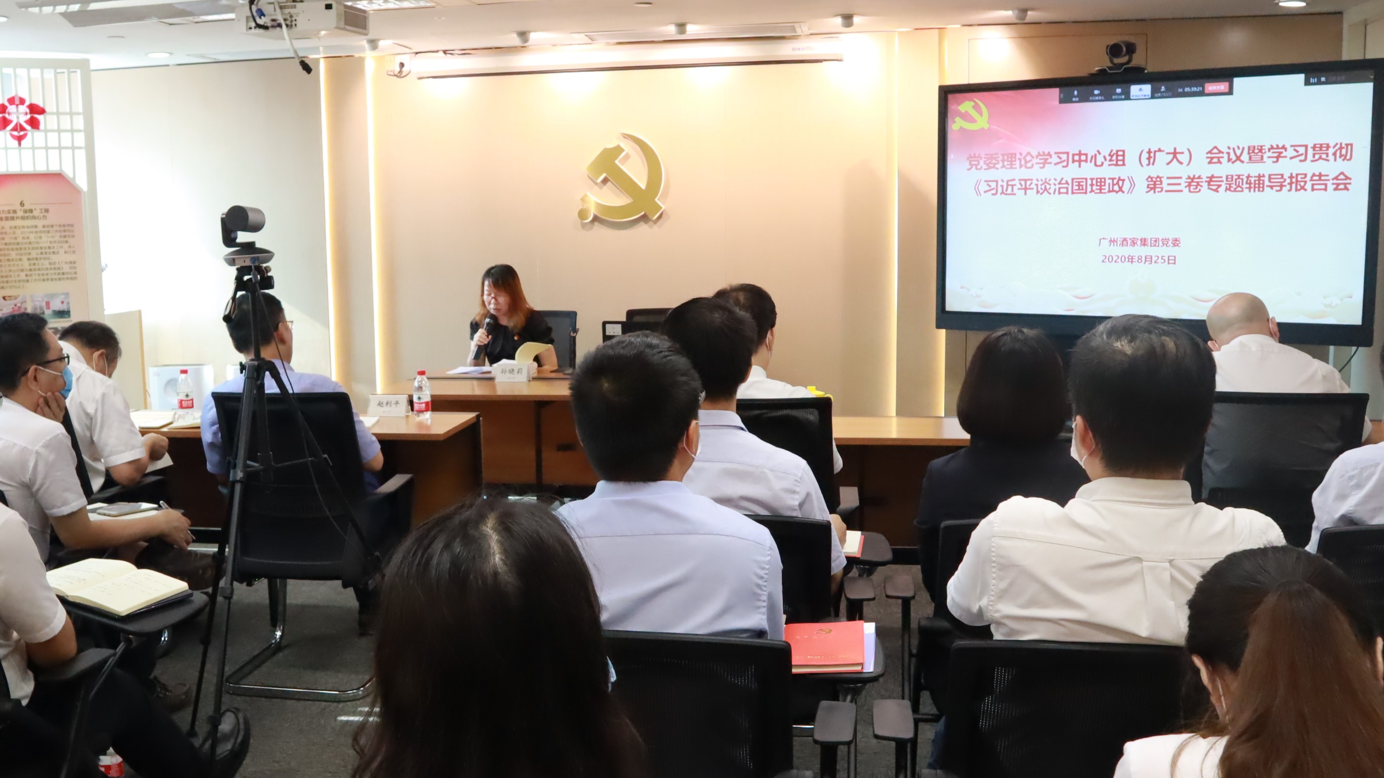 8月25日,瓜子tv 举办党委理论学习中心组(扩大)会议暨《习近平谈治国理政》第三卷专题辅导报告会,会议邀请暨南大学马克思主义学院院长程京武作专题辅导报告,集团领导班子、全体党员、集团中层以上管理人员等200余人分别在12个视频会场参加学习。集团党委副书记孙晓莉主持会议。