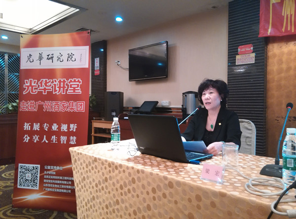 图2 广州市委党校讲师梁宏教授作以“严以用权,真抓实干,树立忠诚、干净、担当的新形象”为主题的辅导报告会上发言。
