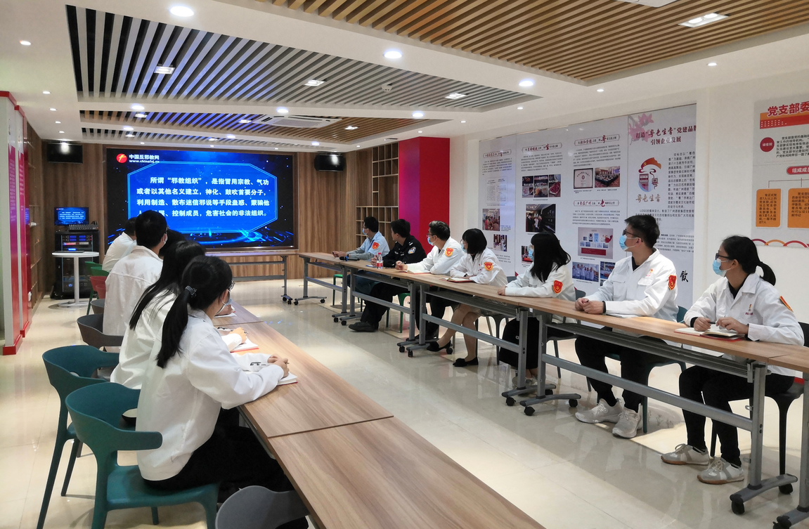 为增强共产党员反邪教的责任心和使命感,进一步发挥基层党组织和党员在反邪教斗争中的战斗堡垒和先锋模范作用,12月2日,利口福公司党总支开展反邪教宣传活动。利口福公司党总支书记郭伟雄同志、利口福公司第一党支部书记肖海辉同志、利口福公司第二党支部书记胡罗松同志等15位党员代表参加本次活动。活动邀请南村镇派出所吴昊明警官做专题宣讲。