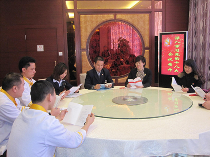 紧接着下午召开学习贯彻十八大精神专题会议,会议由雷冬梅总经理主持,部门管理人员、入党积极分子及员工代表参加了会议。