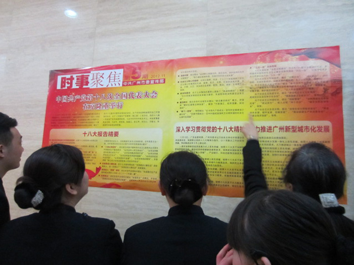 根据集团公司党委关于组织各店党员认真学习贯彻十八大会议精神的要求,12月12日下午,越华天极品公司郭志明总经理组织党员到农讲所参观“喜迎十八大――广州市创先争优活动成果展”和“辉煌征程――中国共产党一大至十八大图片展览”。该展览以党的历次全国代表大会为序,由十八个部分组成,通过400余幅珍贵的历史照片和40多件珍贵文物,全面反映了自1921年中共一大召开以来至十八大的中国共产党的光辉历史,反映中国共产党带领全国各族人民投身新民主主义革命、社会主义革命和改革开放新的伟大革命,为实现社会主义现代化和推动中华民族伟大复兴的辉煌征程。