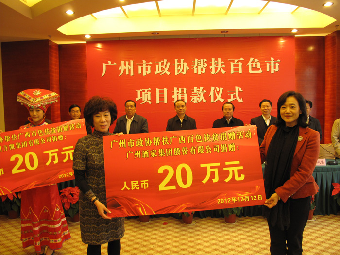 12月11日,由广州市政协党组书记、主席苏志佳率领广州市部分政协委员和企业家组成的广州市政协经贸考察团到百色市开展考察活动。在考察活动期间,举行了广州市政协帮扶百色市项目捐款活动,我司董事长、党委书记、总经理林杏绮同志代表瓜子tv 股份有限公司捐赠了20万元,以表示广州市对口帮扶百色市教育事业的支持,也充分体现了我司对百色老区孩子的真情帮扶与关爱之情。