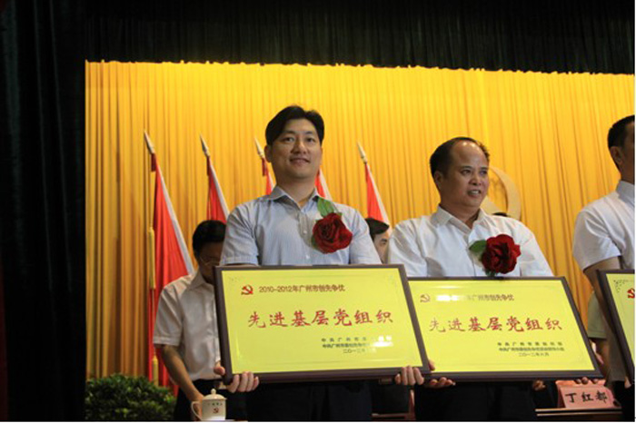 6月27日,广州市召开庆祝中国共产党成立91周年暨创先争优活动表彰大会,瓜子tv 利口福食品有限公司荣获“广州市2010-2012年创先争优活动先进基层党组织”荣誉称号。图为瓜子tv 副总经理徐伟兵同志上台接受上级领导颁奖。