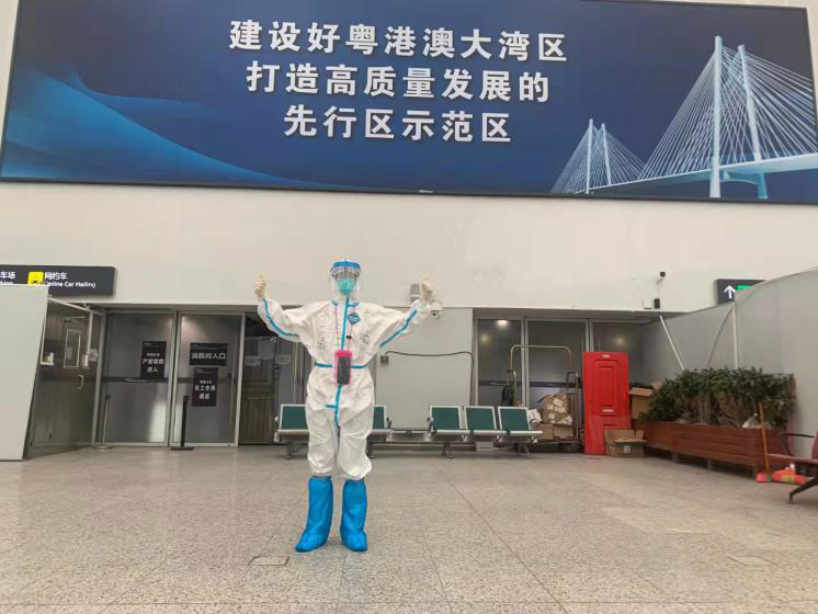 1999年的青年党员袁一鸣在白云机场支援疫情防控工作