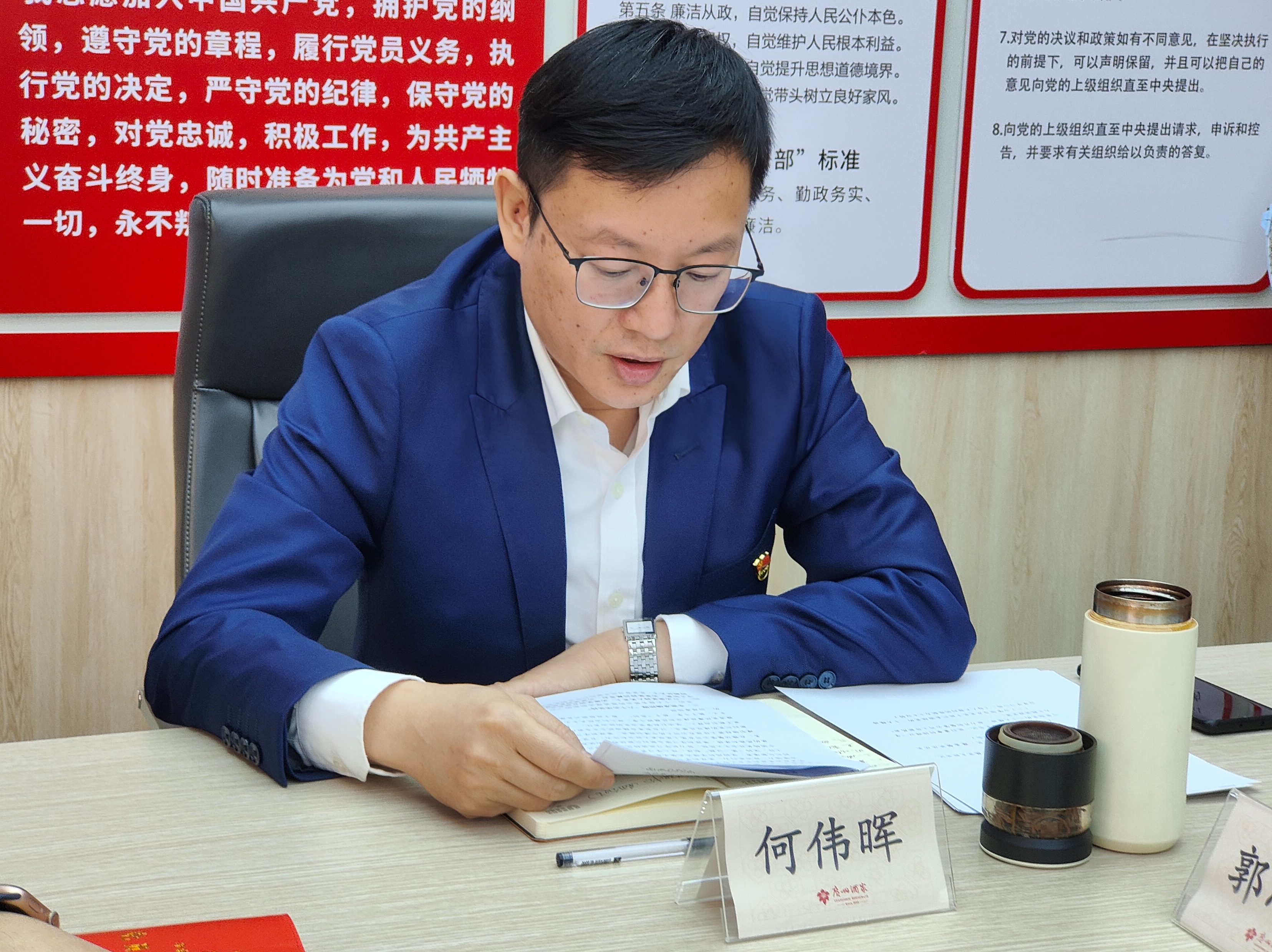 何伟晖同志围绕党的二十大会议主题、意义和报告内容作了深入浅出的阐述,结合公司实际,重点对“六个必须坚持”“坚持高质量发展”等意义进行了生动讲解。他指出,学习宣传贯彻党的二十大精神是当前和今后一个时期的首要政治任务,强调要按照集团统一部署,精心组织安排,迅速掀起热潮。一要抓好大学习,采取“三会一课”、支部例会、主题党日等方式深入开展全员学习,认真领会、深学细研党的二十大精神。二要抓好大宣传。按照集团工作部署,制定落实学习宣传方案,集中学习宣传党的二十大精神,及时报道公司各级学习贯彻党的二十大精神的动态做法。三要抓好大贯彻。紧紧围绕贯彻落实党的二十大精神,认真研究谋划明年工作的目标思路举措。弘扬伟大建党精神,以咬定青山不放松的执着,全力冲刺四季度目标,推动党的二十大精神在餐管公司落地生根、开花结果。