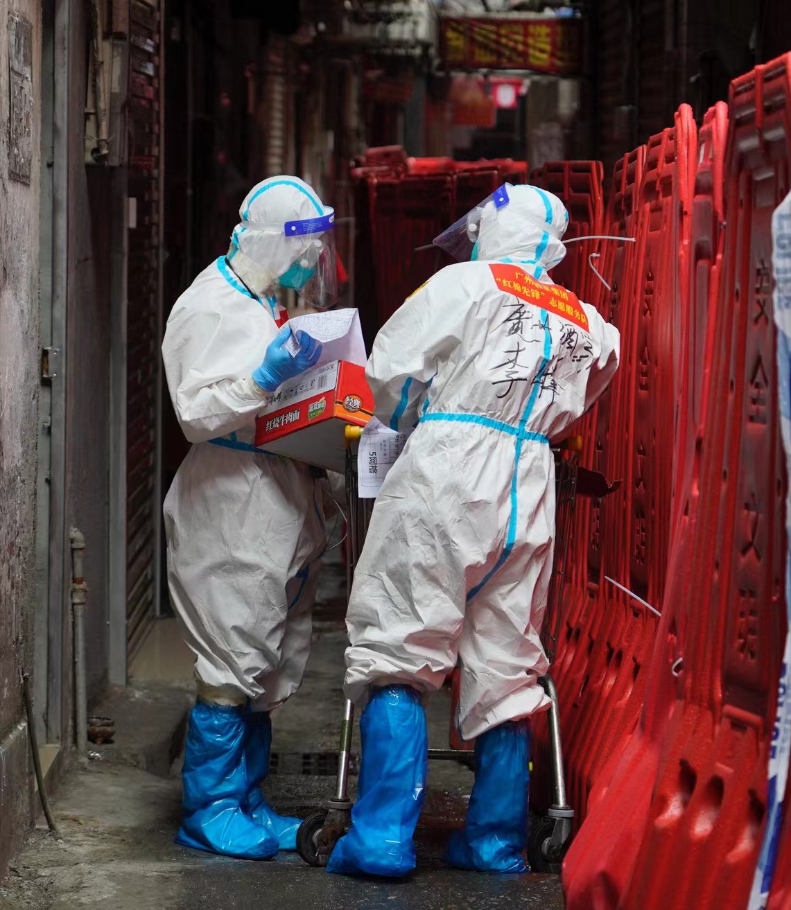 “如果组织需要,我必义不容辞!”来自连锁公司的蔡泽锋是一名年轻的00后党员,面对中高风险支援的地区,他毅然决然报名参加海珠区疫情防控支援服务,加入海珠区赤岗街道客村片区的生活物资保障组,化身“小蓝”与“大白”,将生活物资及时配送至居民手中。