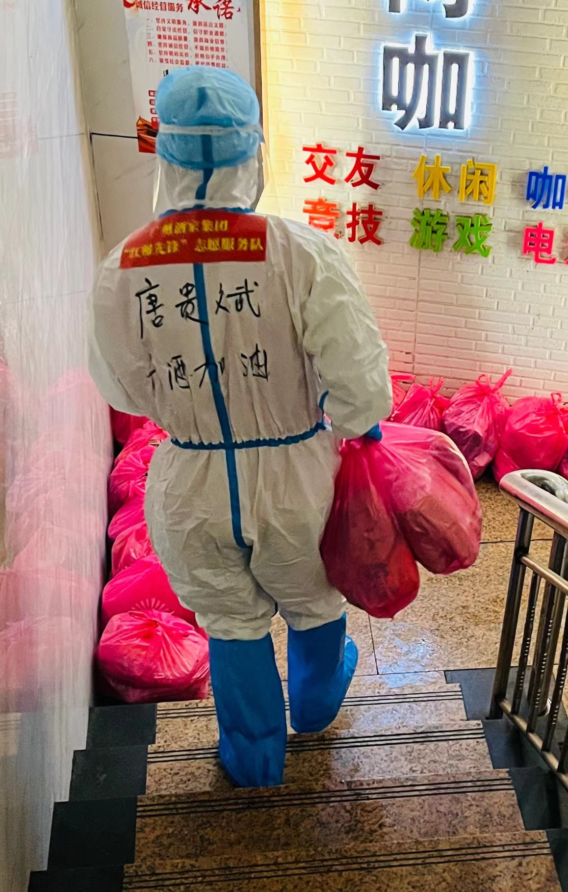 11月2日早上,在现场忙碌着的蔡泽锋了解到,第五网格因特殊原因无人配送造成物资堆积,需紧急召集队员配送。面对最接近高风险区居民的工作,蔡泽锋无惧风险、主动参加,顶着瓢泼大雨,迈着坚定步伐前往第五网格开展配送工作,最终历时4个多小时把滞留的物资送到了居民手中。“少年强则国强,作为一名青年党员,就要起到先锋模范作用,应该冲锋在前为人民服务。”蔡泽锋以行动守住“为民服务”的初心,唱响“后浪”抗“疫”之歌。