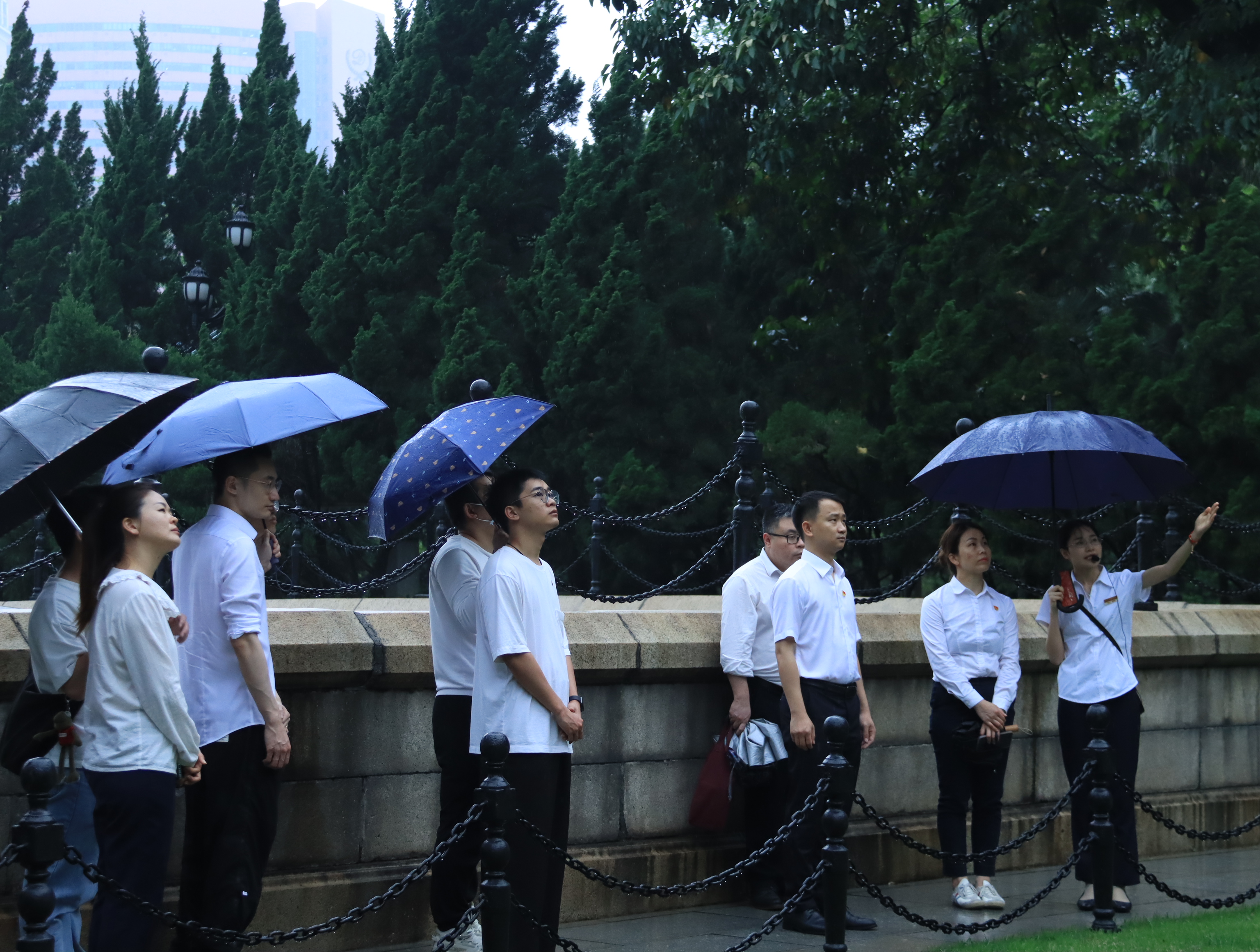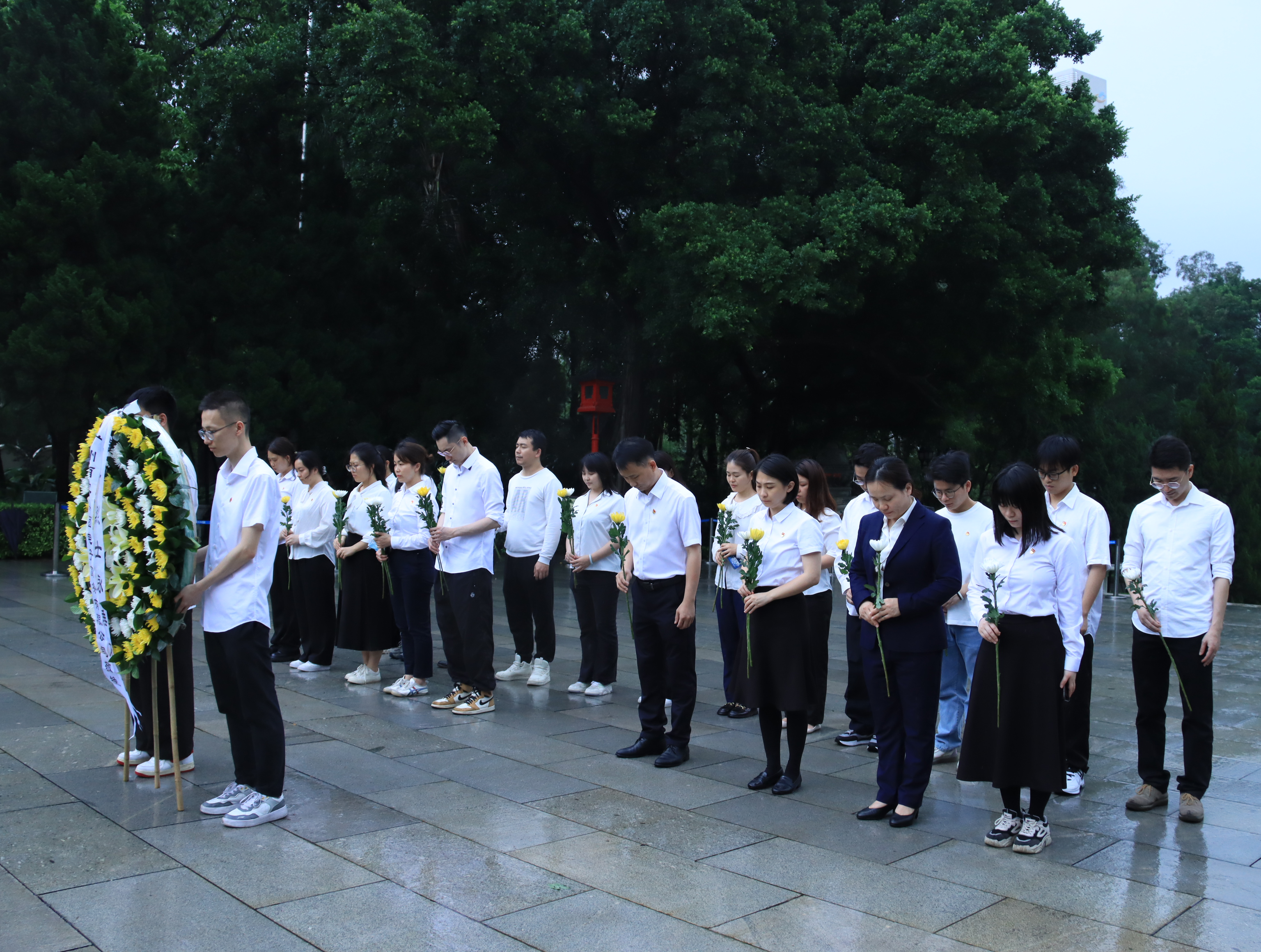 随后,大家来到黄花岗七十二烈士陵园,在墓碑前,大家怀着沉重的心情细读每行碑文,深入了解黄花岗起义的过程和七十二烈士的事迹。纪念碑前,全体人员庄严列队,向革命先烈鞠躬默哀、敬献花圈花束,表达对革命先辈的敬仰和缅怀。