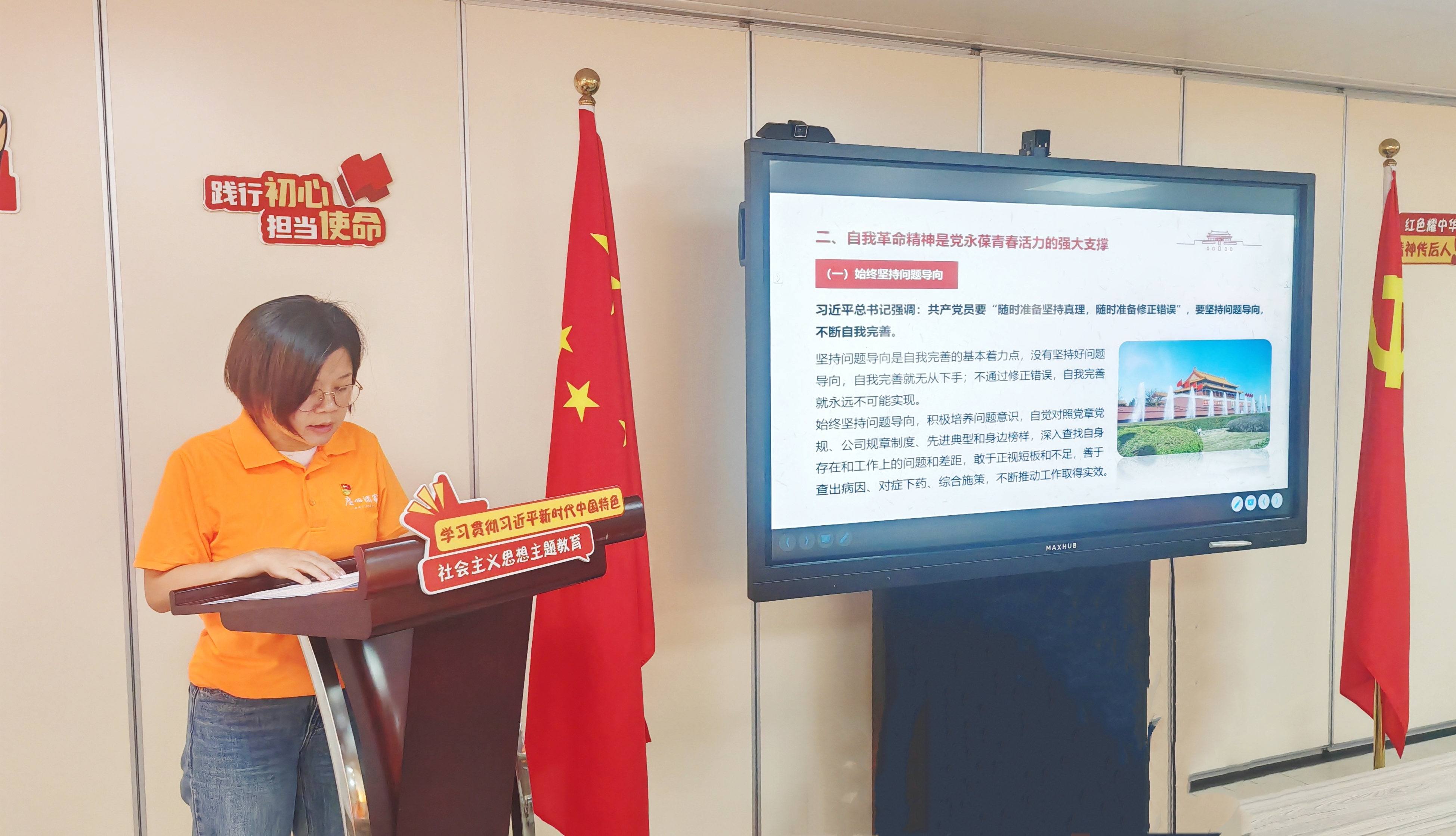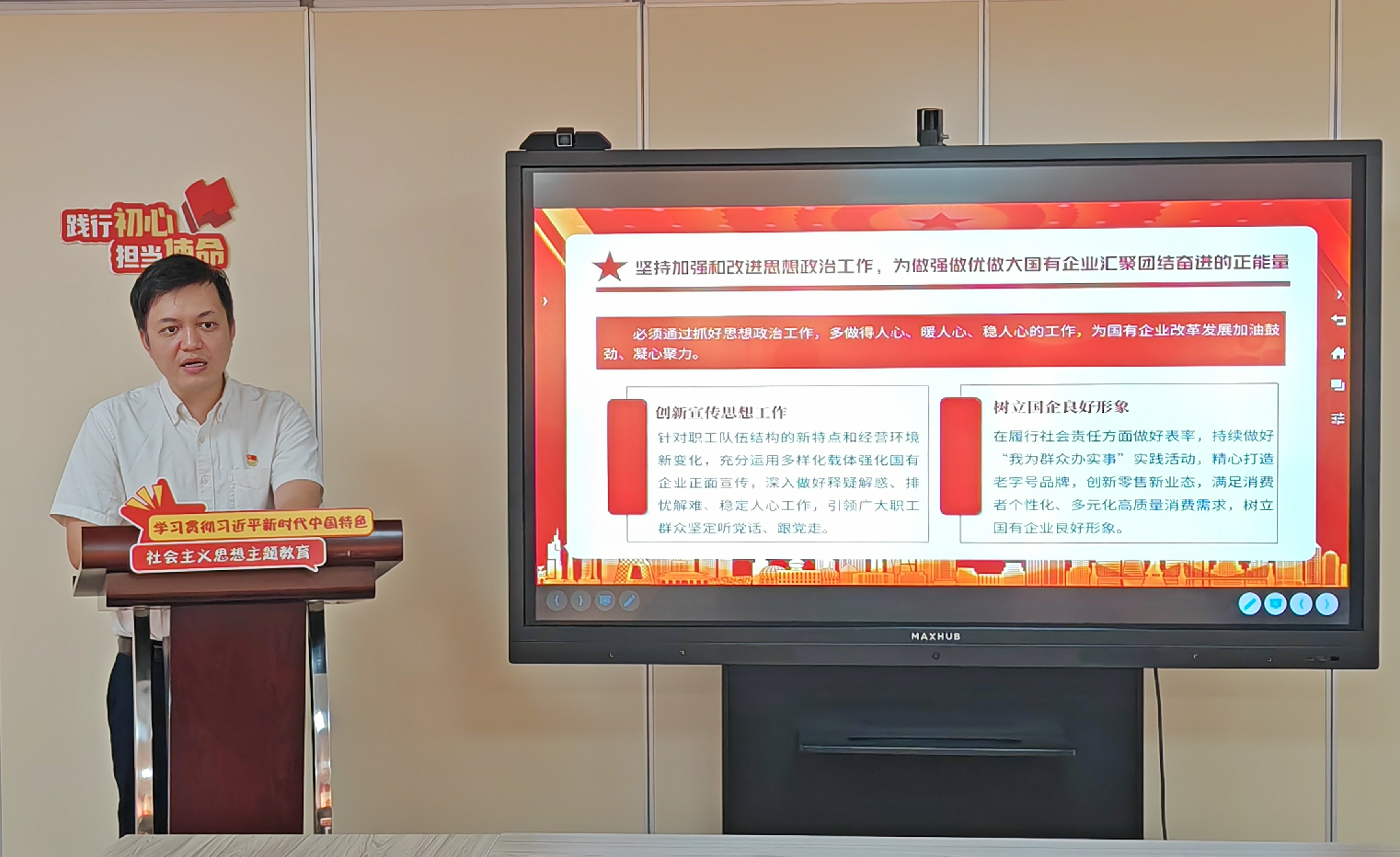 公司党支部纪检委员、副总经理张赤梅以《勇于自我革命 永葆先进纯洁》为题开展专题党课辅导。张赤梅同志指出,要牢记初心使命,全体党员必须坚决筑牢思想道德防线,增强拒腐防变和抵御风险能力。要以人民为中心,落实“三个第一人”的要求,走到基层门店、走进仓库一线,以“时时放心不下”的责任感帮助员工群众解决工作问题。要抓好警示教育,常态化开展“一季度一警示一谈话”。要增强行动自觉,切实履行“一岗双责”,压实“两个责任”,保持“八小时内外”自觉。