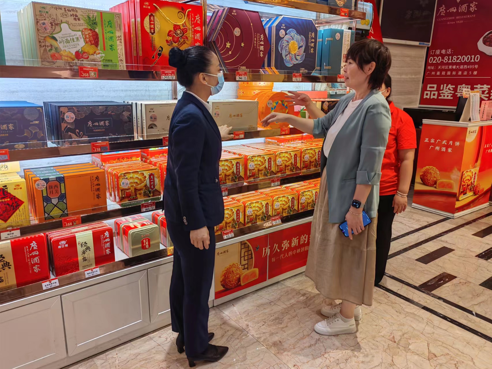 聚焦月饼销售工作,餐管公司领导班子分别前往联系门店,重点对营业部、厨房、饼屋等进行实地走访,指导门店做好生产预案、客流指引、产品陈列、会员销售等工作。走访期间,通过慰问门店一线员工,指导门店做好员工福食、职工停休、节假期间餐饮预订等工作,鼓励干部职工发扬“诚暖顾客心”的企业精神,全力做好门店月饼销售工作。