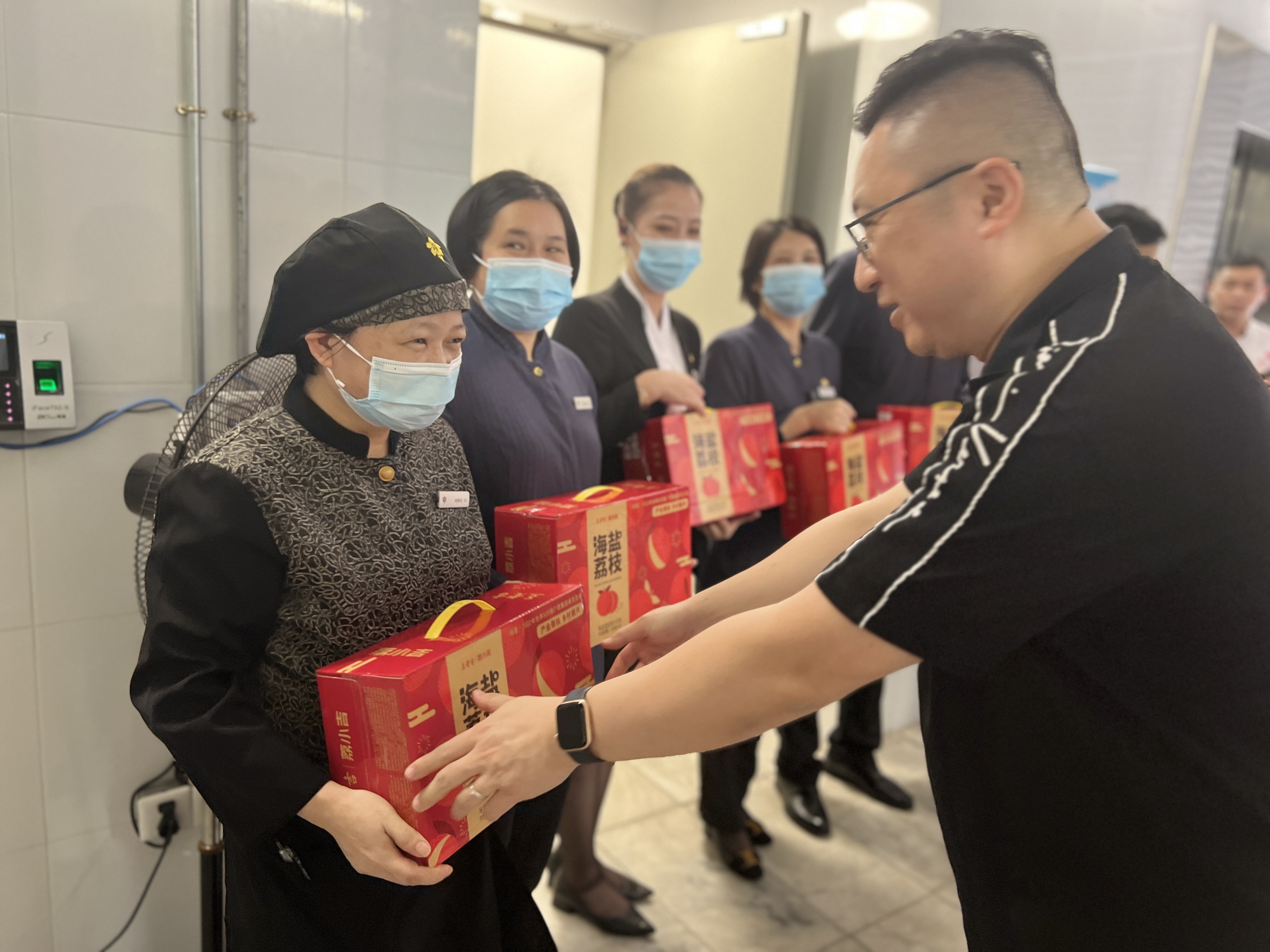 集团各公司工会主席、干部带队走访慰问一线工作岗位的员工,将帮扶产品刺柠吉、藿香正气水、消暑水果等送到奋斗在一线工作的职工手中,饭堂也定点提供清凉汤品、广式凉茶及降温水果等。截至目前,累计为4200多名职工提供超过35.8万元的防暑降温物资。