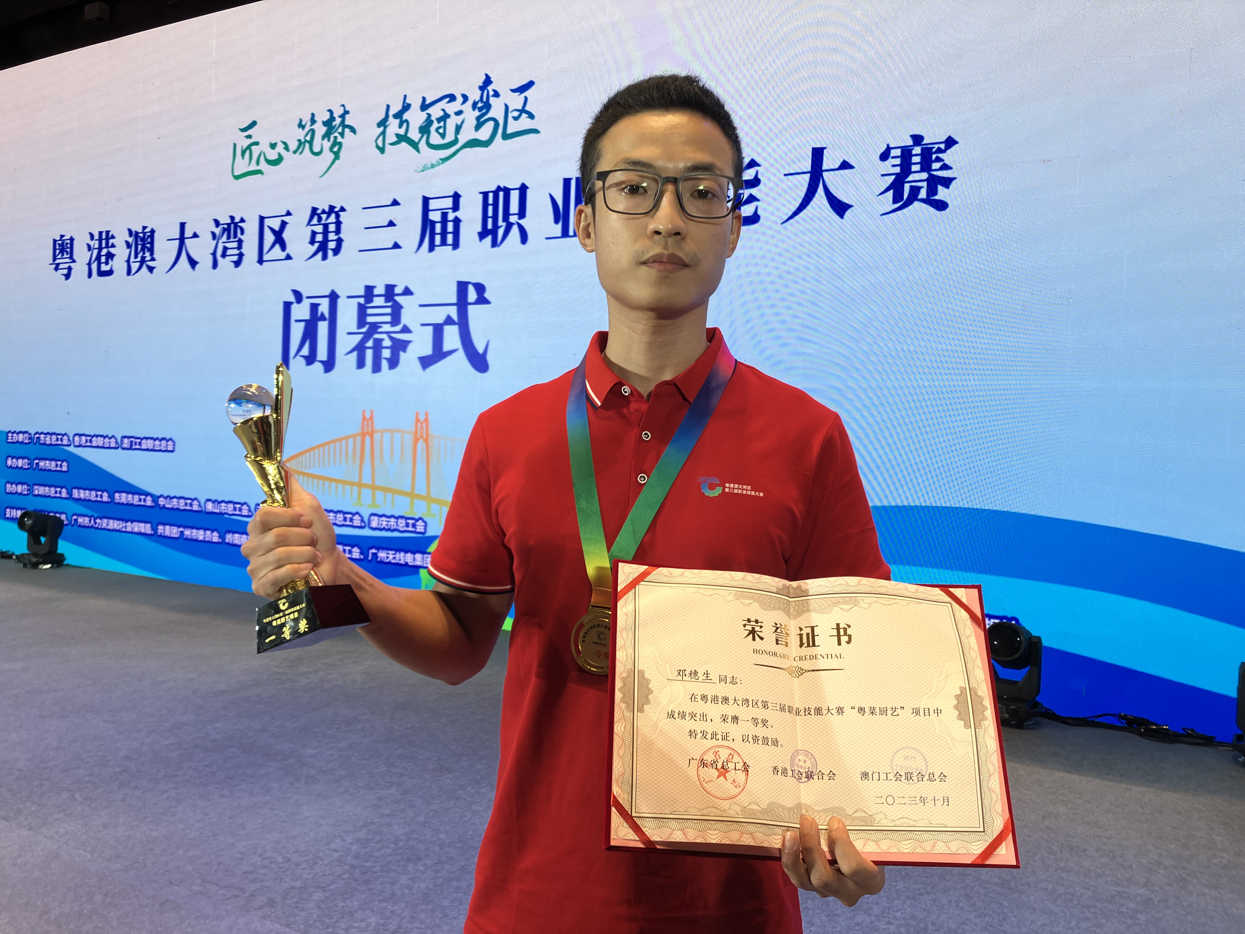10月22—24日,由广东省总工会、香港工会联合会、澳门工会联合总会联合主办,广州市总工会承办的“匠心筑梦 技冠湾区”粤港澳大湾区第三届职业技能大赛在广州白云国际会议中心举行,瓜子tv 厨师邓穗生荣获“粤菜厨艺”一等奖,广州市代表队获得团体一等奖。集团党委书记、董事长徐伟兵,工会主席郭伟雄受邀出席本次开幕式。