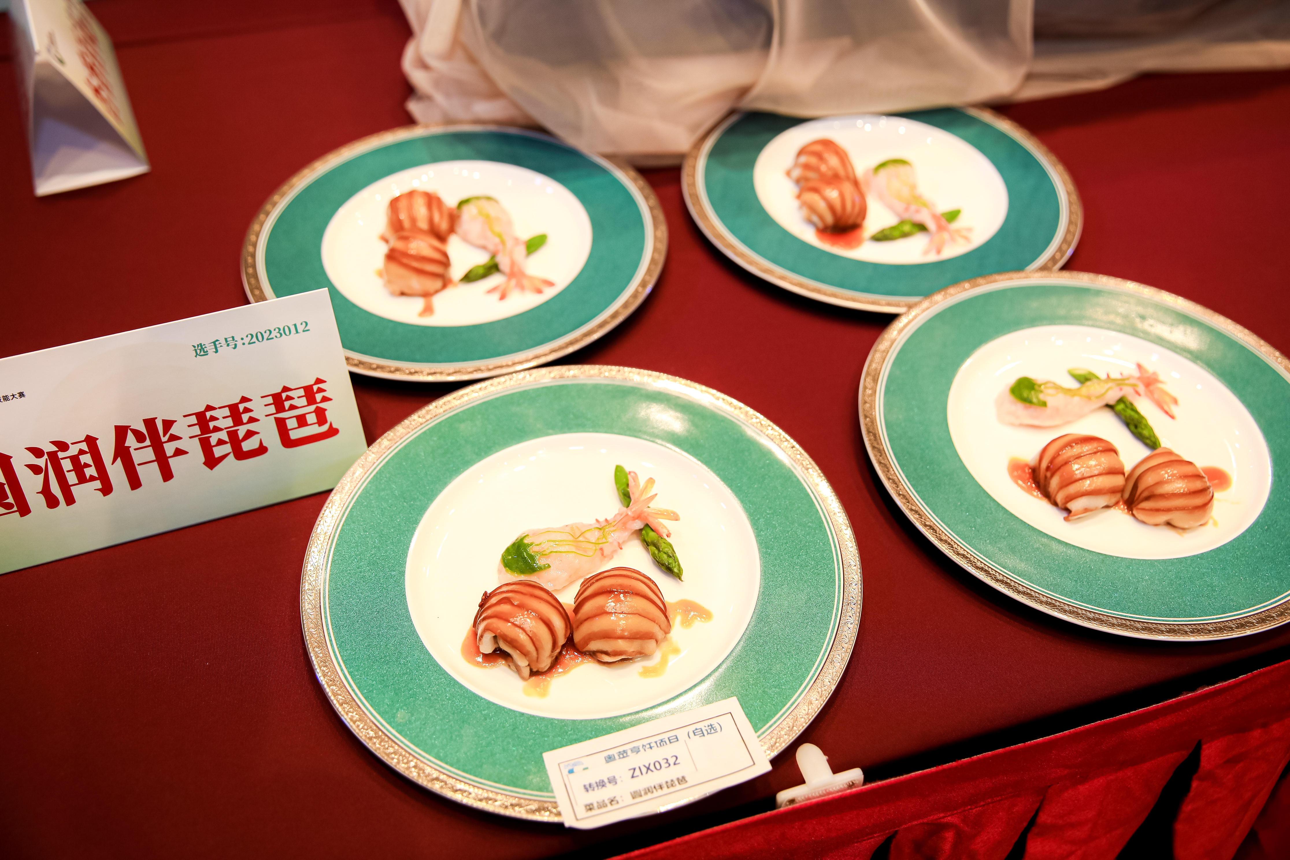 本次粤港澳大湾区粤菜厨艺竞赛需要参赛选手在规定的时间运用粤菜烹饪技法,独立烹制3款具有粤菜饮食文化特征、体现各地饮食风味的粤菜菜肴。邓穗生尝试在梅菜扣肉的基础上进行菜品形状和口感的创新,带来了一道名为“圆润伴琵琶”的菜品。他解释说,“‘圆润’就是用梅菜、糯米、猪肉包裹成一个圆球,‘琵琶’则是用虾泥做成琵琶的形状。一个是形状的变化,另外一个是口感的变化,加入了糯米,吃起来口感Q弹。”