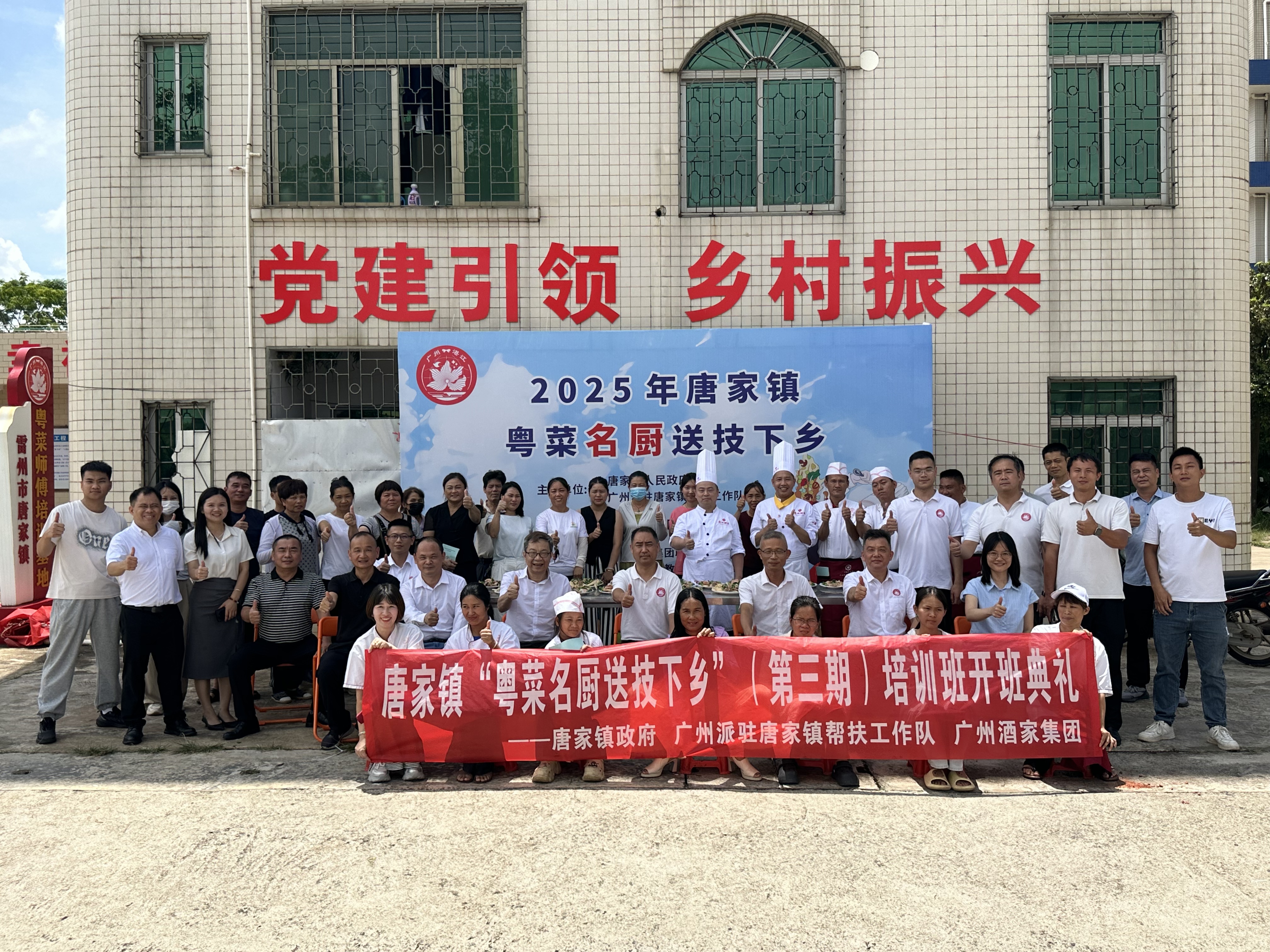 为贯彻落实省委“百县千镇万村高质量发展工程”的部署要求,促进雷州市唐家镇脱贫群众就业创业,近日,瓜子tv “粤菜名厨送技下乡”第三期培训班开班仪式在雷州市唐家镇举行,全镇40余名学员参加“中式烹饪”技能培训。