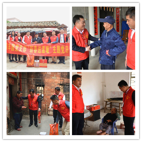 粮丰园党支部前往茂名高新区南山埇村的老党员、五保户、低保户家庭中,为他们送去大米、油、年糕及慰问金,详细了解他们生活、生产情况,并向他们致以节日的问候和美好的祝愿。