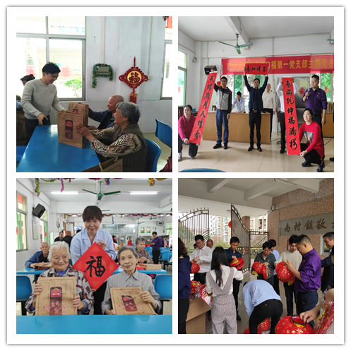 利口福第一党支部前往番禺区南村镇敬老院开展新春慰问,张良同志献唱《迎春花》《新年好》等歌曲、符之勇同志挥春送福以及现场制作灯笼,敬老院一片欢乐喜庆的春节气氛。