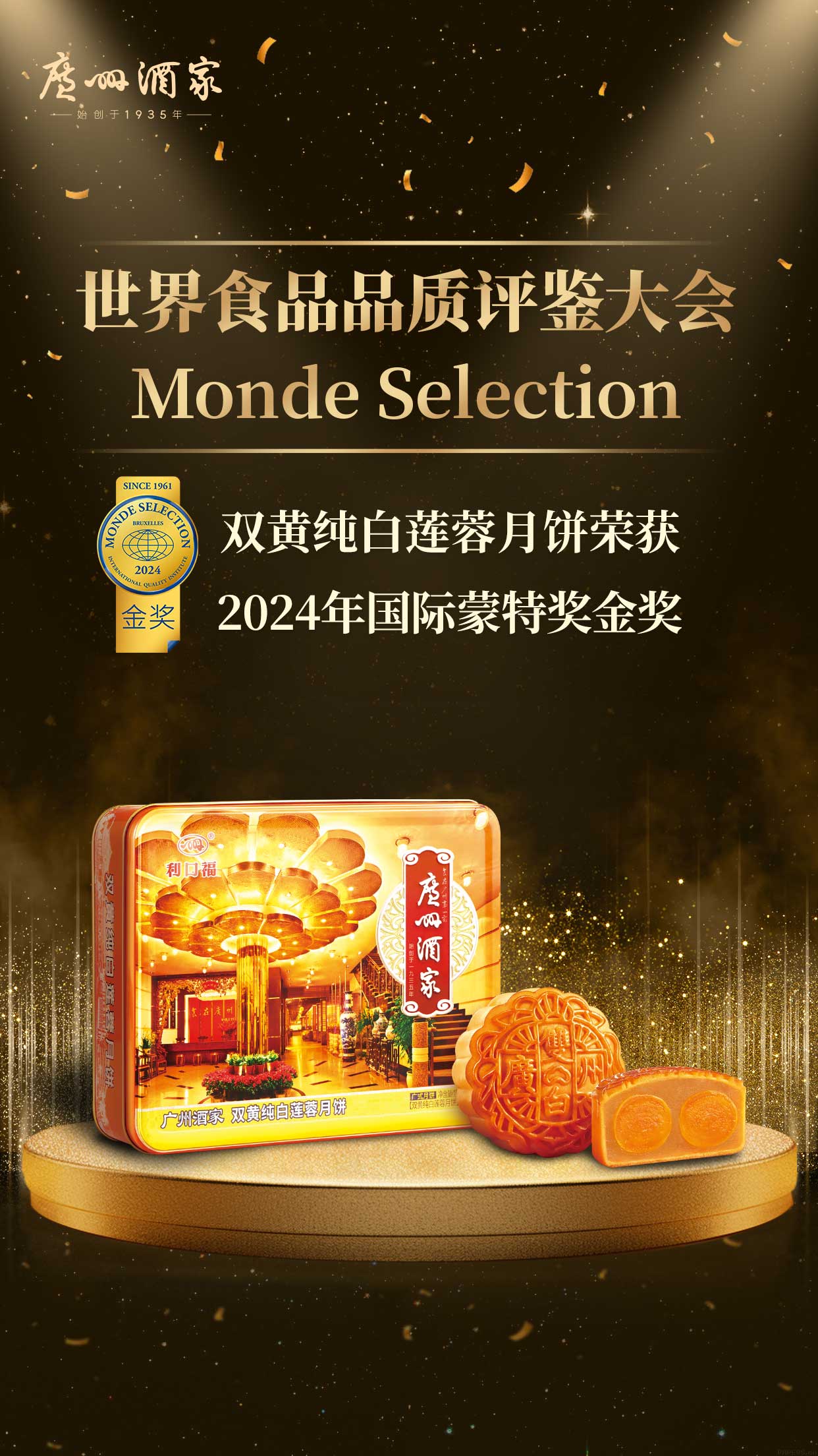 图/双黄纯白莲蓉月饼荣获2024年国际蒙特奖金奖