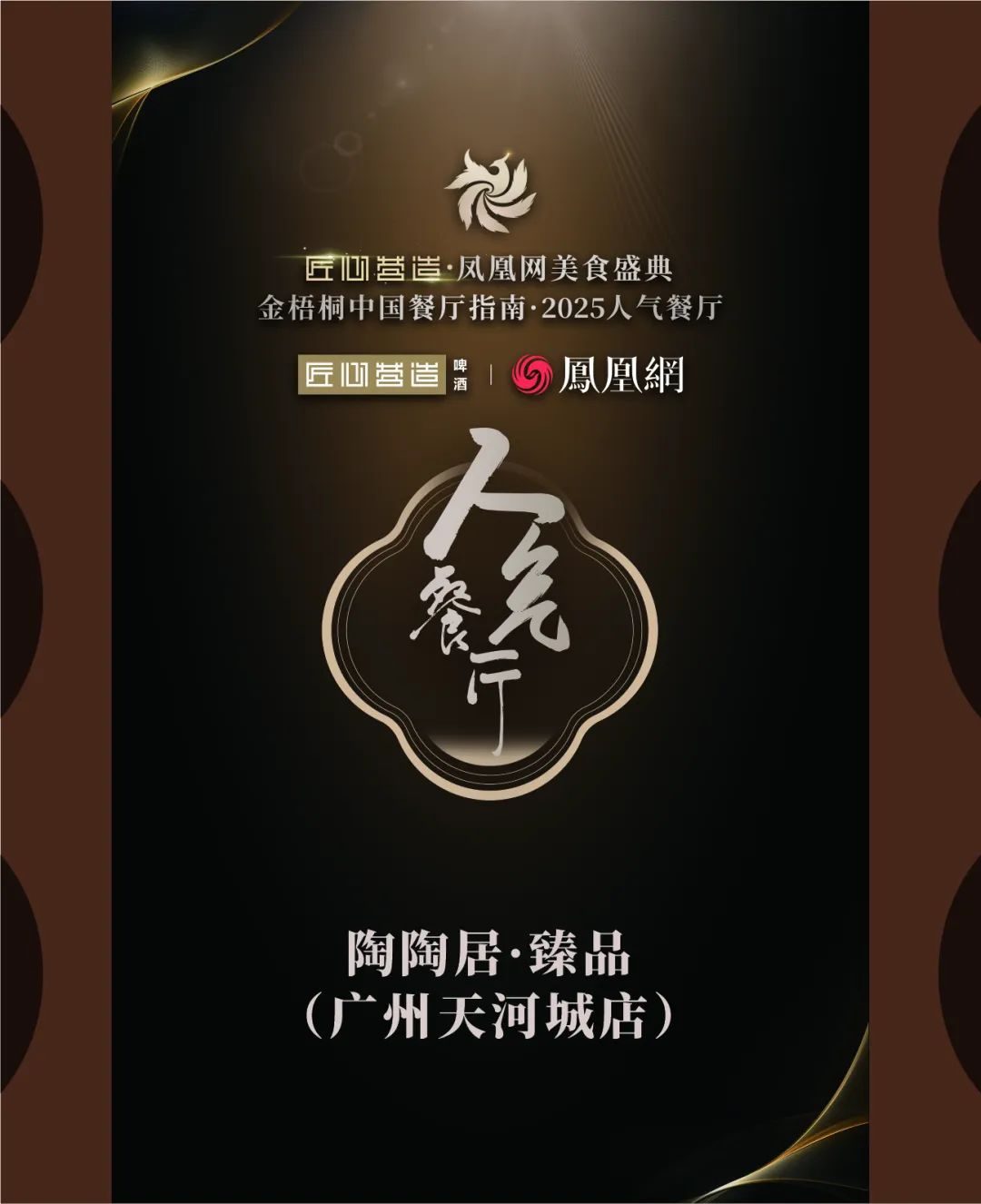 近日,在成都举行的2025金梧桐中国餐厅指南颁奖盛典上,瓜子tv 旗下瓜子tv 昌岗店、陶陶居天河城臻品店双双荣膺“金梧桐中国餐厅指南·人气餐厅”,这一国家级餐饮评选首次打破南北地域分隔,全国仅324家餐厅获此荣誉,彰显了粤菜老字号历久弥新的品牌魅力。